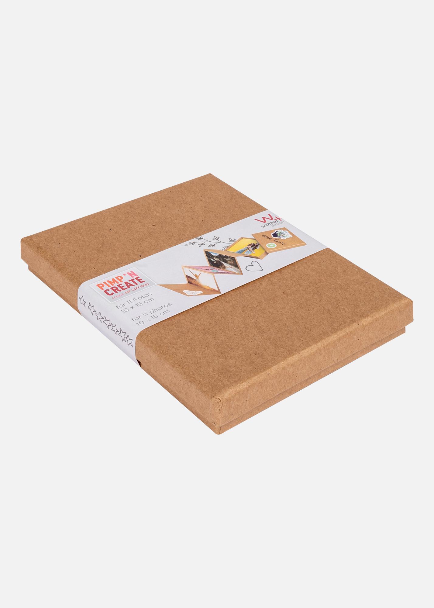 PAC Leporello-Box Кафяв е елегантен акордеонен албум, проектиран да побира 11 снимки с размери 10x15 см. Корица е изработена от кафява занаятчийска хартия с подходяща кафява вътрешна част, което придава класическо и вечно усещане. Този албум е перфектен за събиране и показване на вашите спомени по стилен начин.
