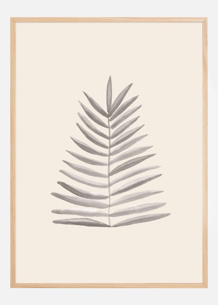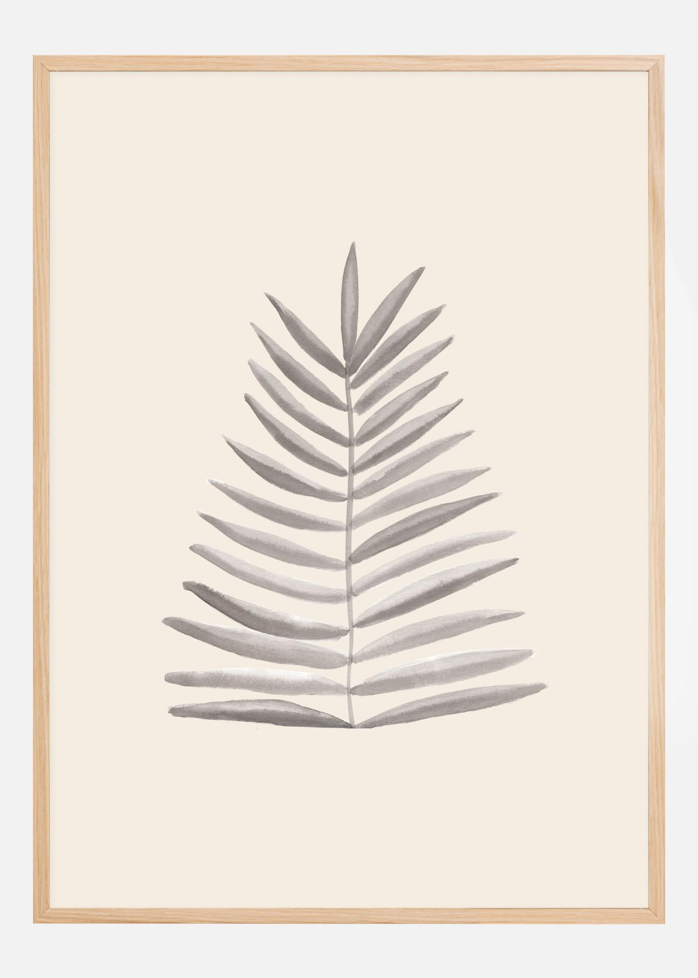 Един прост, но ясен постер с палмово листо. Начертано на кремаво бял фон, листото стои изправено на своята дръжка. Кремаво белият фон подчертава малкото кафяво палмово листо. Добавете този щрих на класа на оцветена стена.