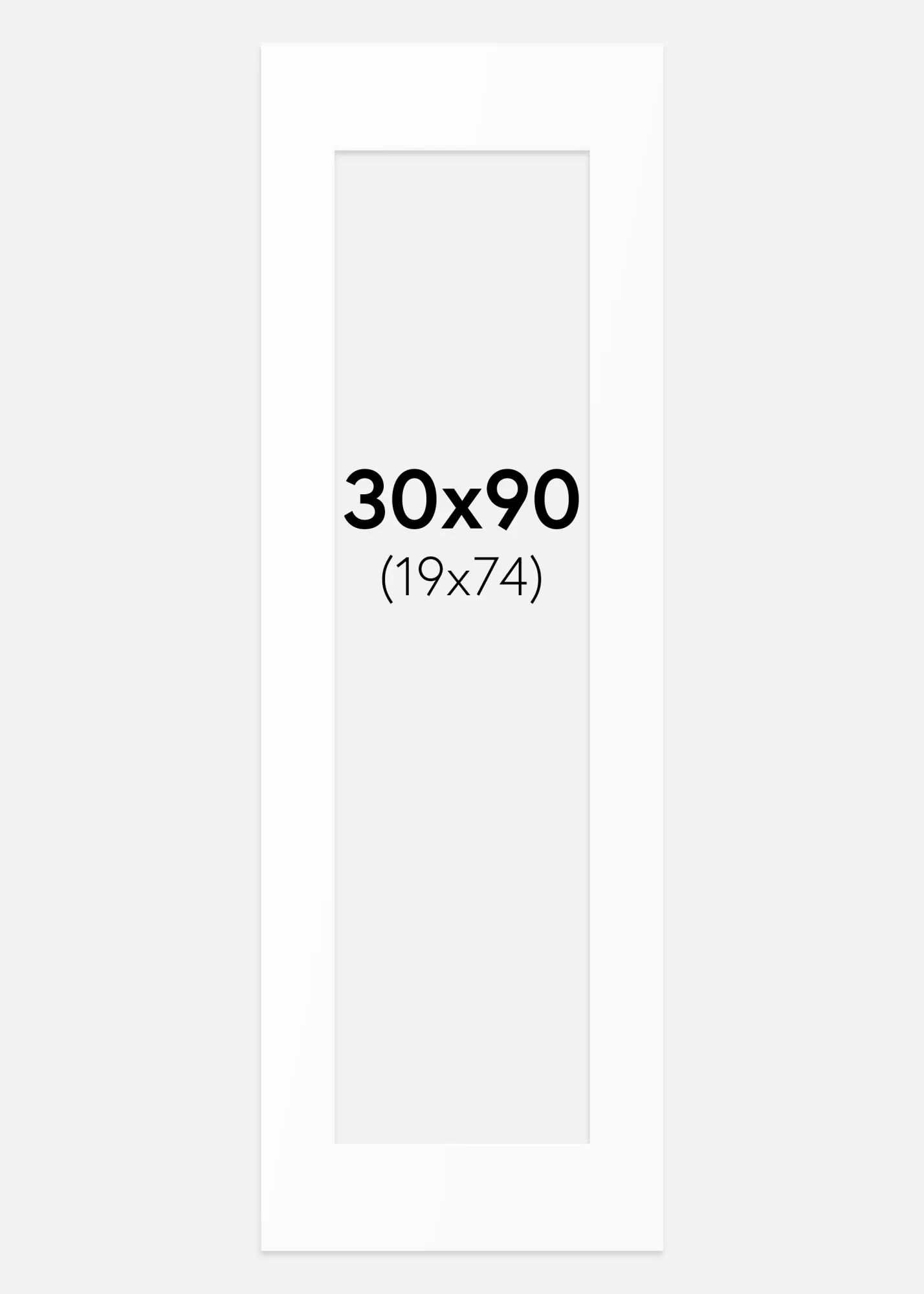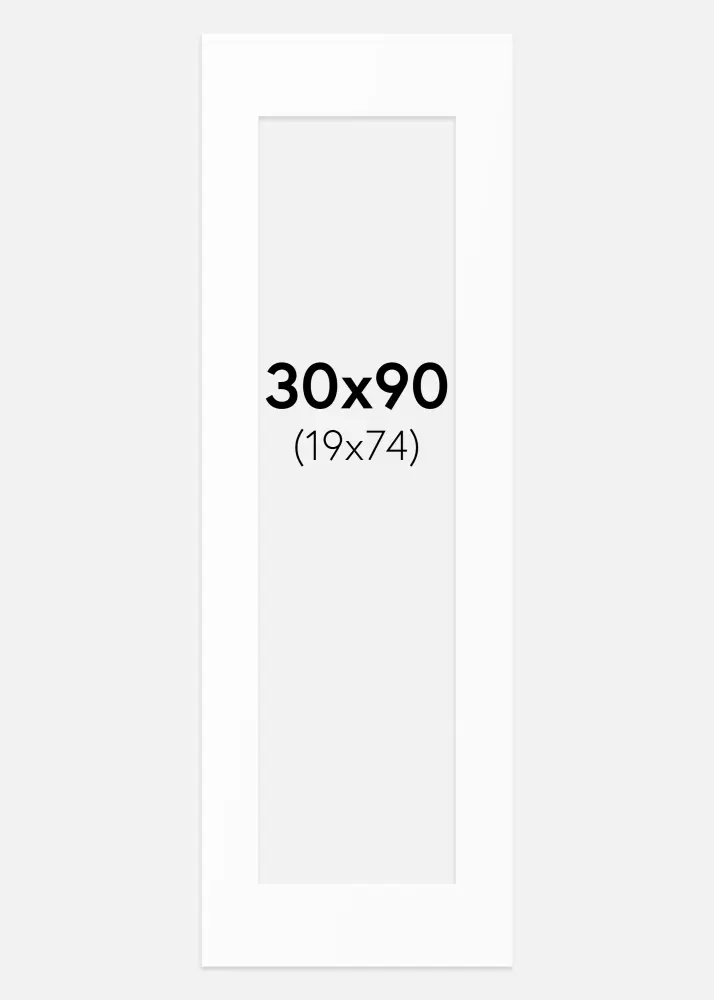 Този елегантен паспарту в бял нюанс е идеалният избор за подчертаване на вашите снимки и произведения на изкуството. С наклонен вътрешен ръб в същия бял цвят се създава стилна рамка, която придава дълбочина и измерение на мотива. Паспартуто е проектирано да пасва на снимки с размер 20x75 см, докато външният размер е 30x90 см, което осигурява красива и балансирана презентация.