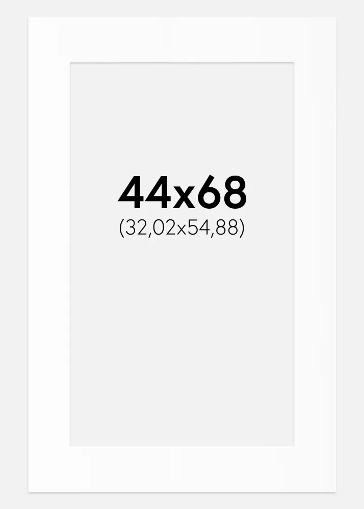 Този елегантен паспарту в бял нюанс е перфектният избор за подчертаване на вашите снимки и произведения на изкуството. С наклонен вътрешен ръб в същия бял цвят се създава стилна рамка, която придава дълбочина и подчертава мотива по изискан начин. Паспартуто е проектирано да пасва на снимки с размер 33,02x55,88 см (13x22 инча) и има външен размер 44x68 см, което го прави идеално за различни рамки.