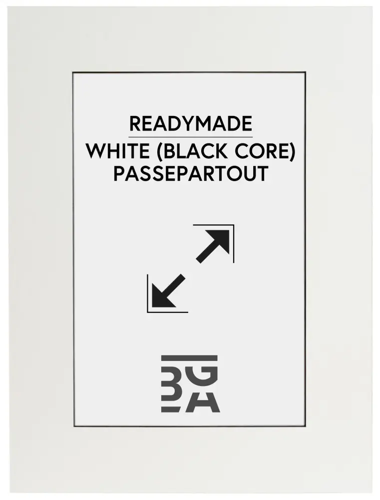 Бял пасепарту с високо качество от водещия на пазара Canson. Пасепартута на Canson са, разбира се, без киселини и неутрални по PH, което е важно за дълготрайност. Скосяваните ръбове, най-близо до мотива, са черни.