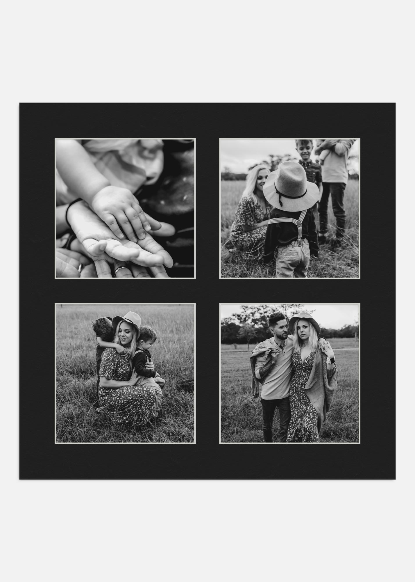 Киселинно черно колифатен паспарту с наклонени бели ръбове с най-високо качество. В паспартуто има място за 4 снимки. Перфектно, когато искате да направите собствено персонално фото колаж.