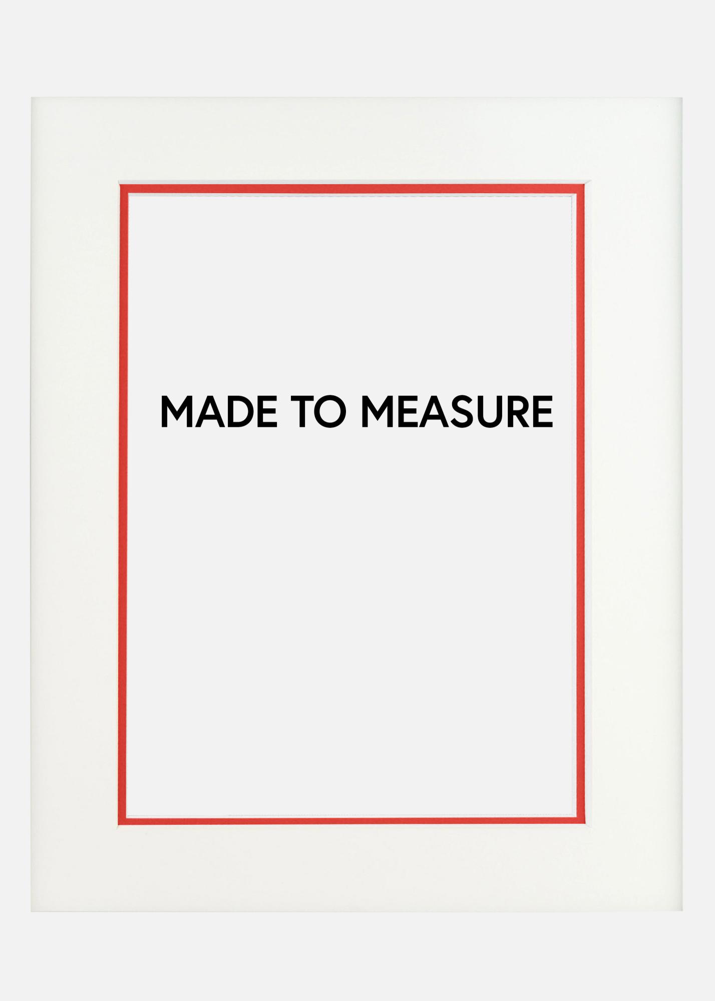 По поръчка паспарту в два слоя с бял паспарту като основа и долен слой в червено, който дава оцветен кант от 5 мм около изображението. Перфектно, когато искате да създадете внушаваща рамка, която подчертава вашата снимка и дава допълнителна дълбочина на мотива. Всички наши паспарту имат елегантно изрязани ръбове под 45-градусов ъгъл, което придава сериозна и професионална рамка на вашите снимки.