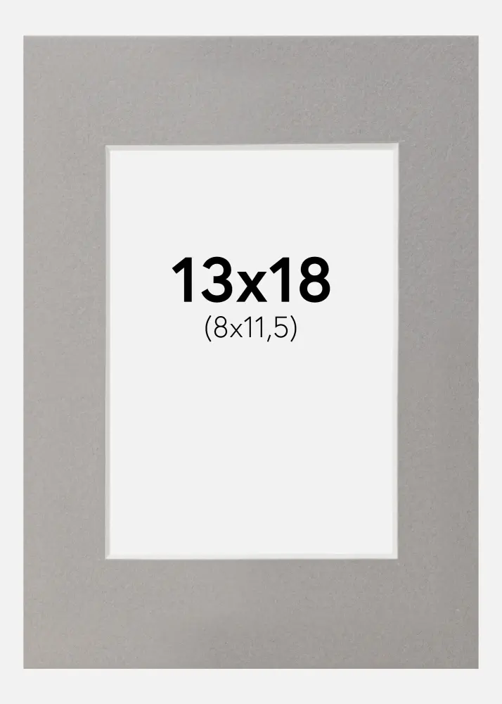 Здрава сива паспарту с бели, косо изрязани вътрешни ръбове от безкиселинен картон.