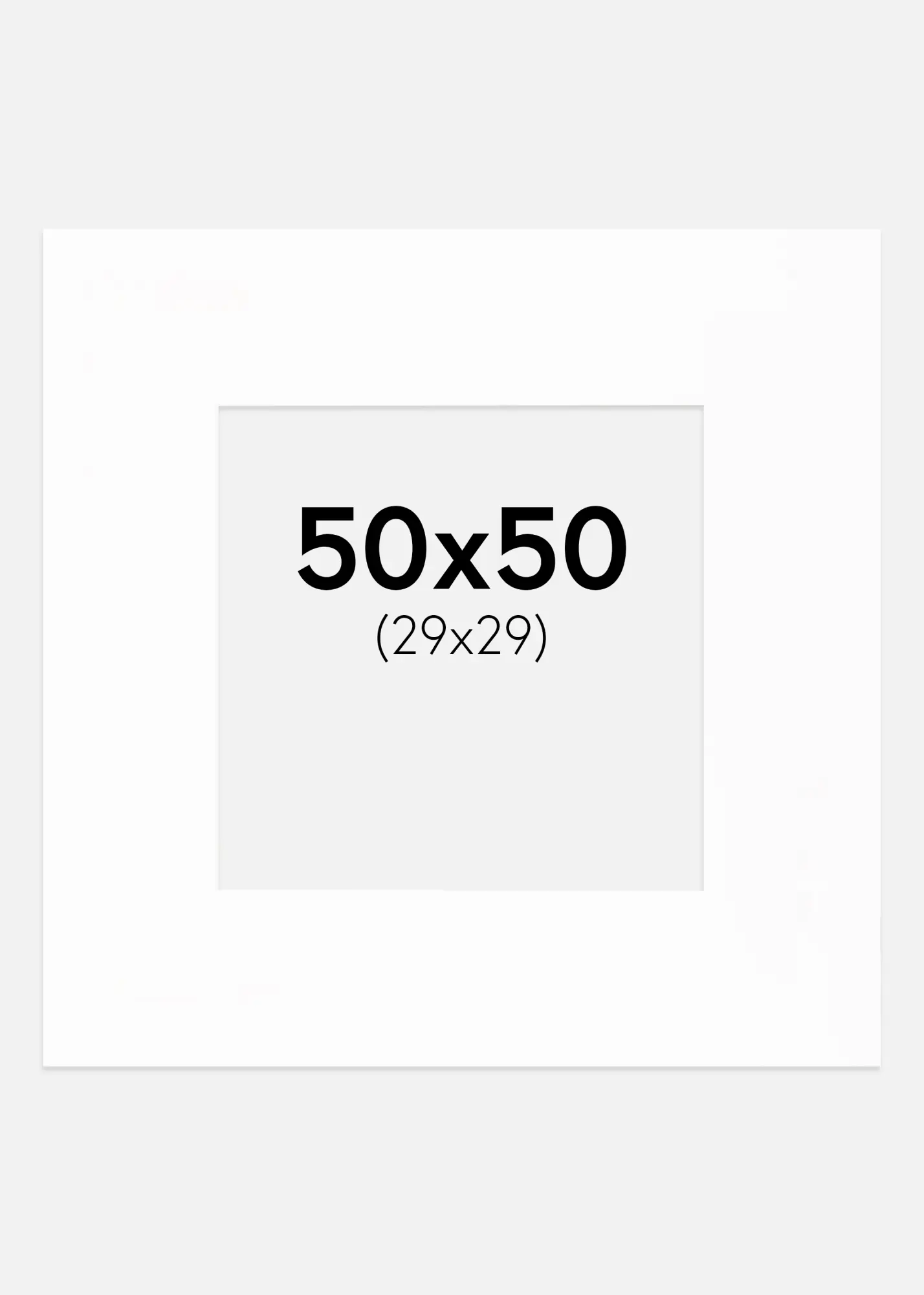 Този елегантен паспарту в бял нюанс е идеалният избор за подчертаване на вашите снимки и произведения на изкуството. С наклонен вътрешен ръб в същия бял цвят се създава стилна рамка, която придава дълбочина и измерение на вашия мотив. Паспортното е проектирано да побере снимки с размер 30x30 см, докато външният размер е щедър 50x50 см, което осигурява допълнително широки ръбове и създава усещане за простор.