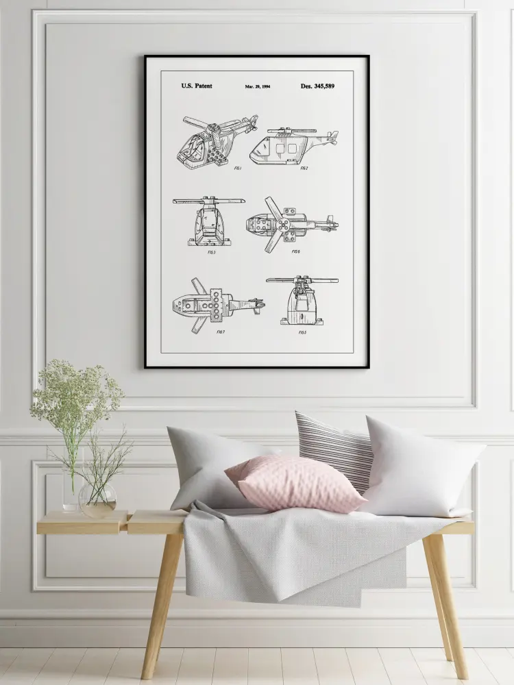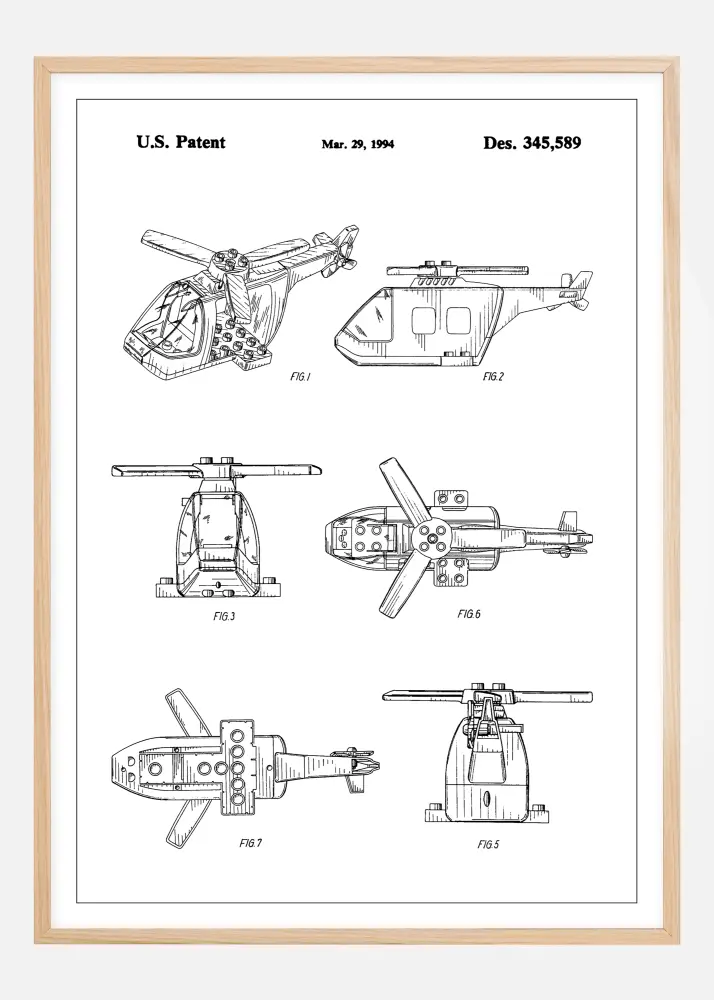 Открийте този уникално стилен постер-патент, който изобразява иновативна конструкция на хеликоптер от Lego, подробно представена чрез серия от технически чертежи. Този патентен чертеж не е само фантастична тема за разговор, но и почит към човешкото изобретателство, идеален за украса на стени в дома или офиса. Създаден да вдъхновява и вълнува, този патентен постер илюстрира компонентите, обхващащи както изкуството, така и науката в авиационната техника.