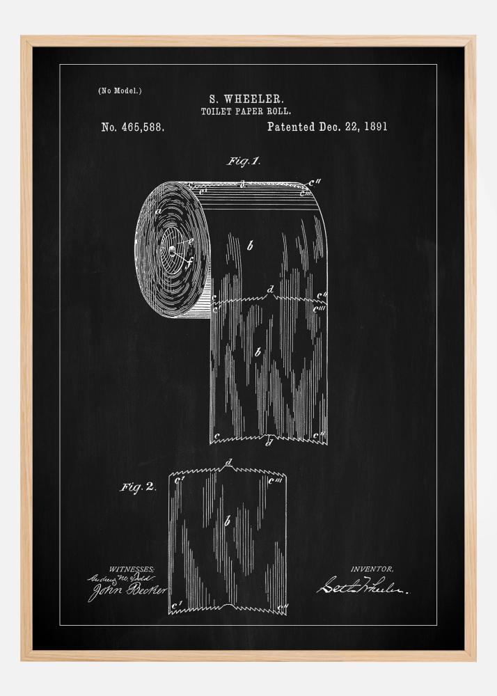 Този изключителен патентен постер представя една безвременна изобретка, класическата ролка тоалетна хартия, чрез нейния оригинален патентен чертеж от 22 декември 1891 г. Контрастът между черния фон и бялите линии придава на този патентен афиш елегантен и модерен вид, като същевременно отдава почит на гениалните идеи зад ежедневните предмети. Това е уникална комбинация от изкуство и история, която хваща окото и предизвиква интелектуални разговори.
