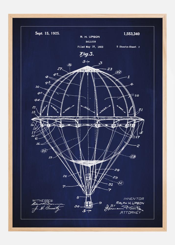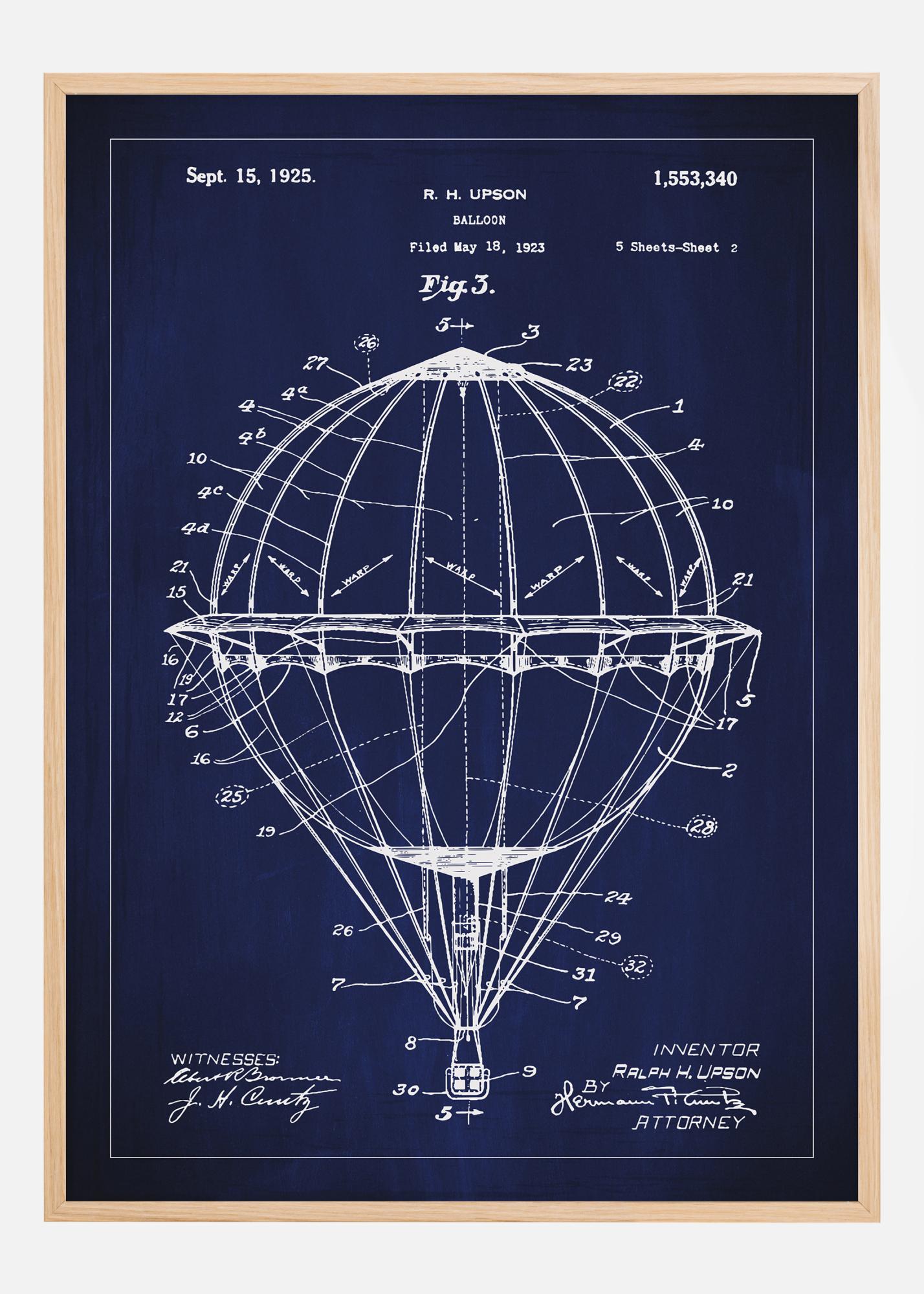 За истинския ентусиаст на ранните авиоинженерни постижения, този патентен плакат предлага поглед в славната ера на авиационните пионери. Представен на 15 септември 1925 г., тази патентна рисунка, номер 1,553,340, изобразява въздушен балон, проектиран от Ралф Х. Ъпсън, който представлява важен етап в аеродинамичния дизайн и конструкция. Този плакат е безценна репрезентация на човешките стремежи и мечти за небесни приключения.