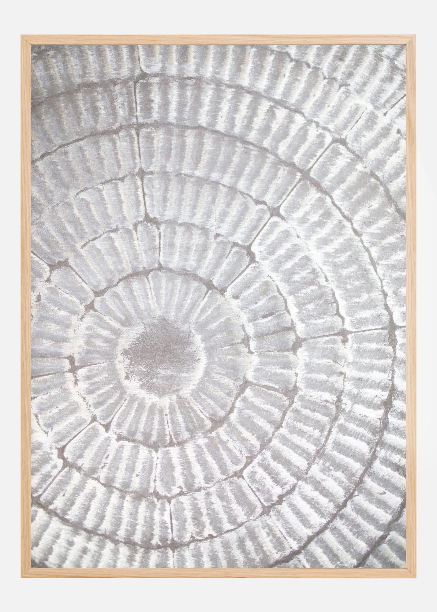 Стъклено изображение с плочка в сив цвят с шаблон. Кръглите бежови и бели пръстени създават ребрист вид на плочката, която образува перфектен гладък кръг в центъра. Със своите меки успокояващи цветове, тази прекрасна картина създава мирна мистика. Идеално за окачване на цветна стена.