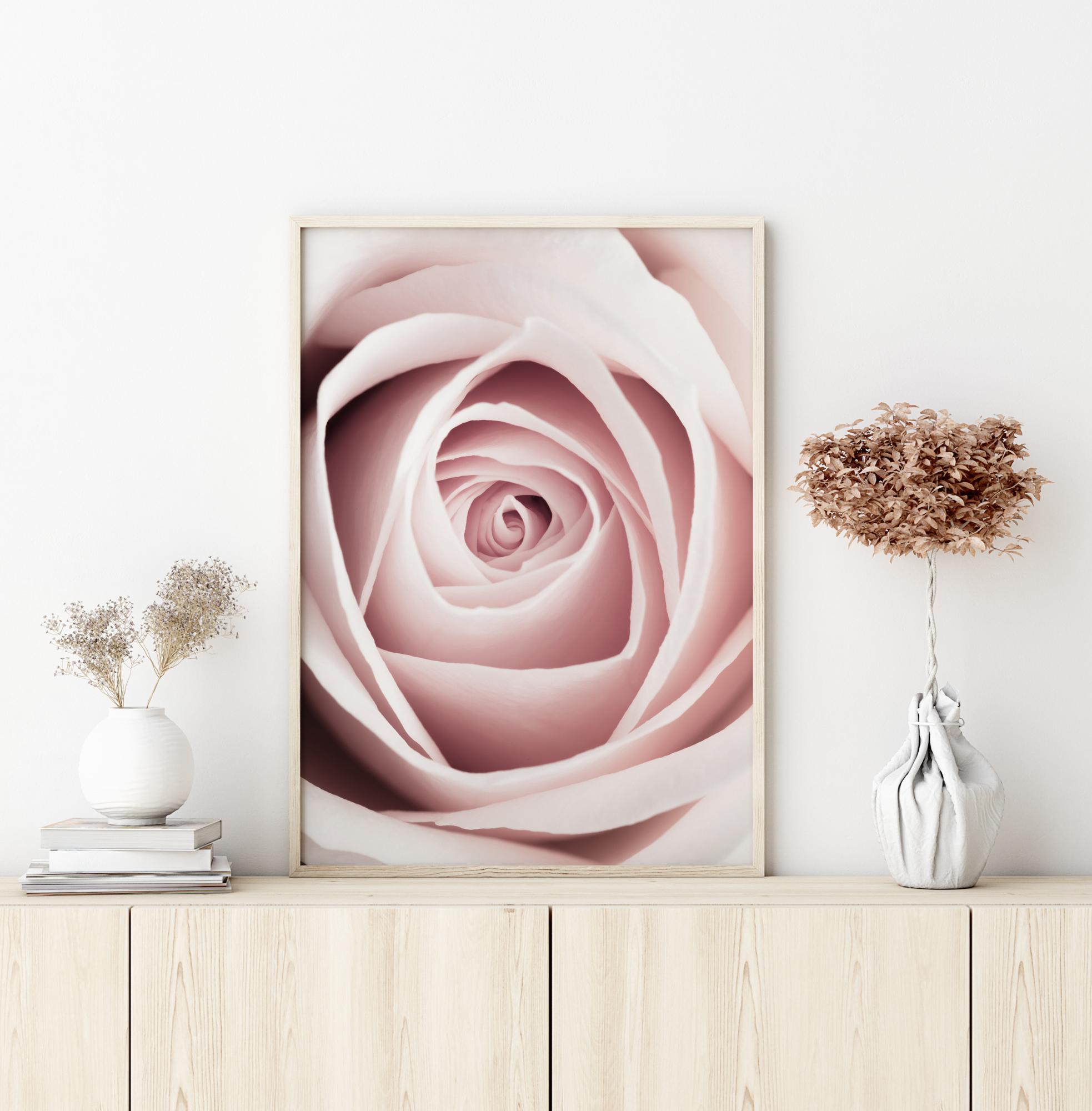 Един зашеметяващо красив принт на малка розова розова пъпка. Красивите меки тонове на розата създават усещане за топлина и дълбочина. Закачете този фин постер на стената на вашата спалня и внесете красотата на това цвете в дома си.