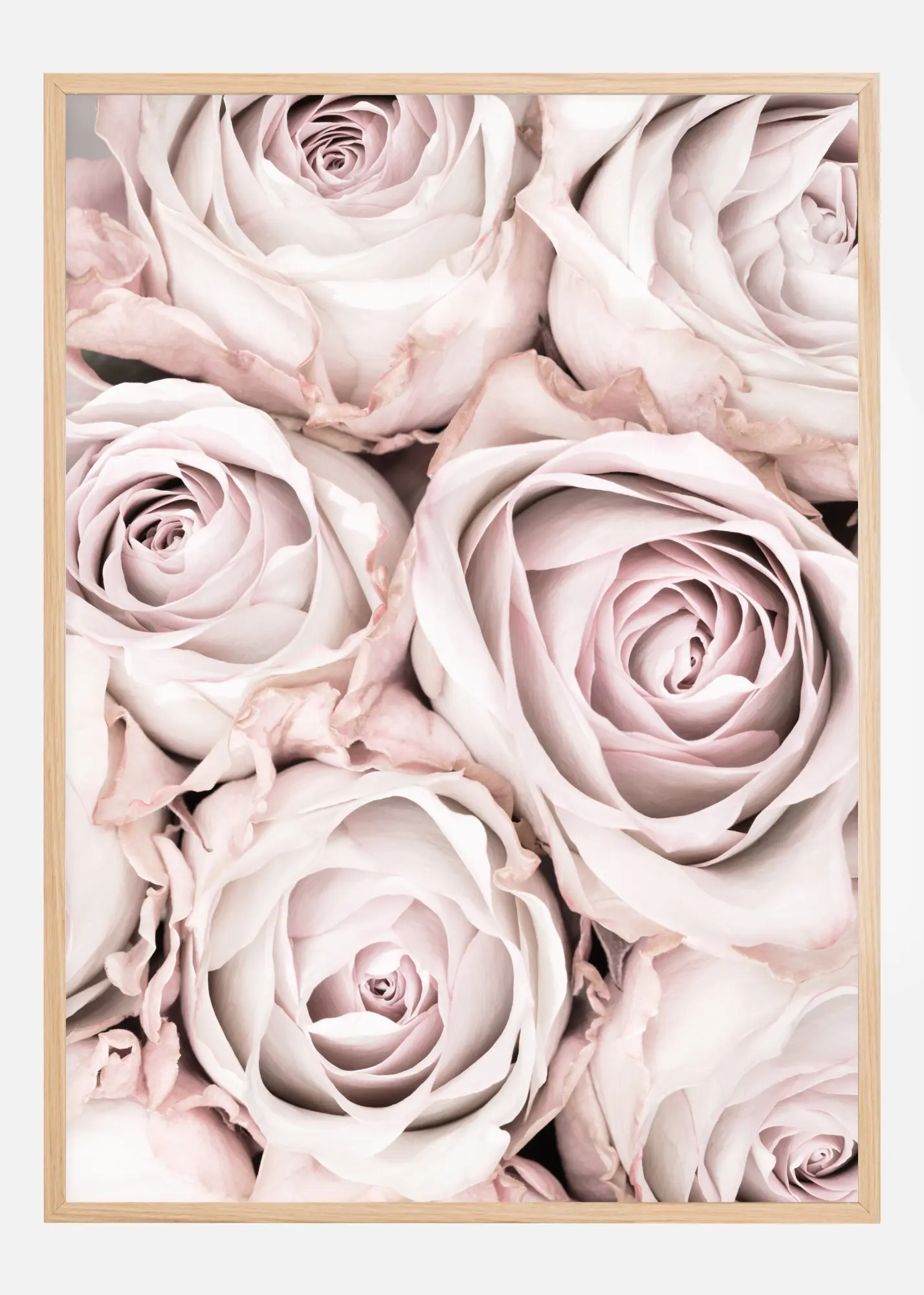 Плакат в изглед от птичи поглед с фантастични розови рози. Красив букет от розови розови пъпки, готови да бъдат закачени във всяка всекидневна. Крехките розови пъпки са по-тъмни в средата и създават чувство за романтика. Внесете този красив букет в дома си за любящо и романтично усещане.