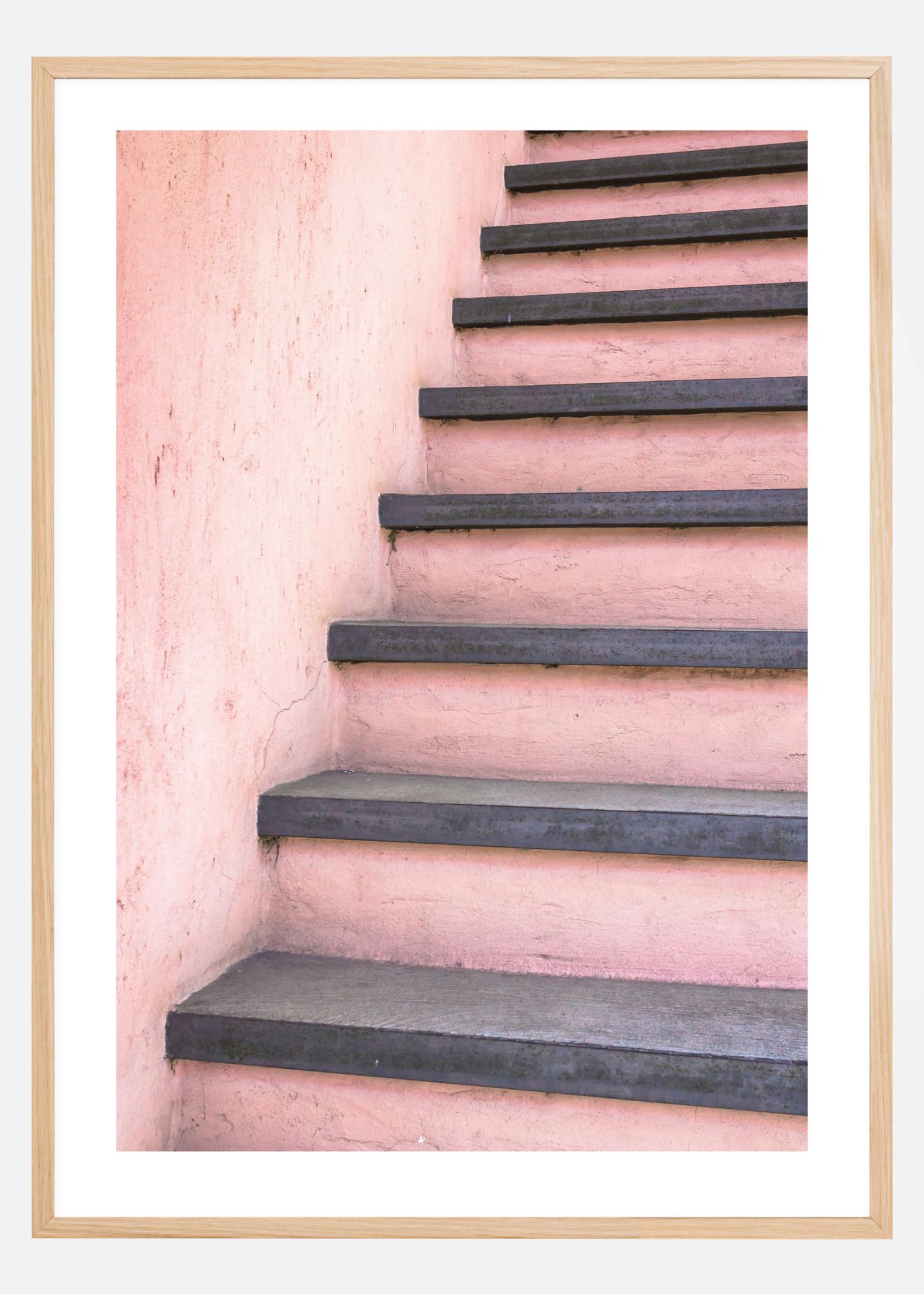 Снимка на стълбище с прекрасни контрасти на розови пастели и сив бетон. Прост и стилен плакат, идеален за комбиниране с други любими на по-голяма стена с картини. Подходящ за повечето домове и интериорни стилове.