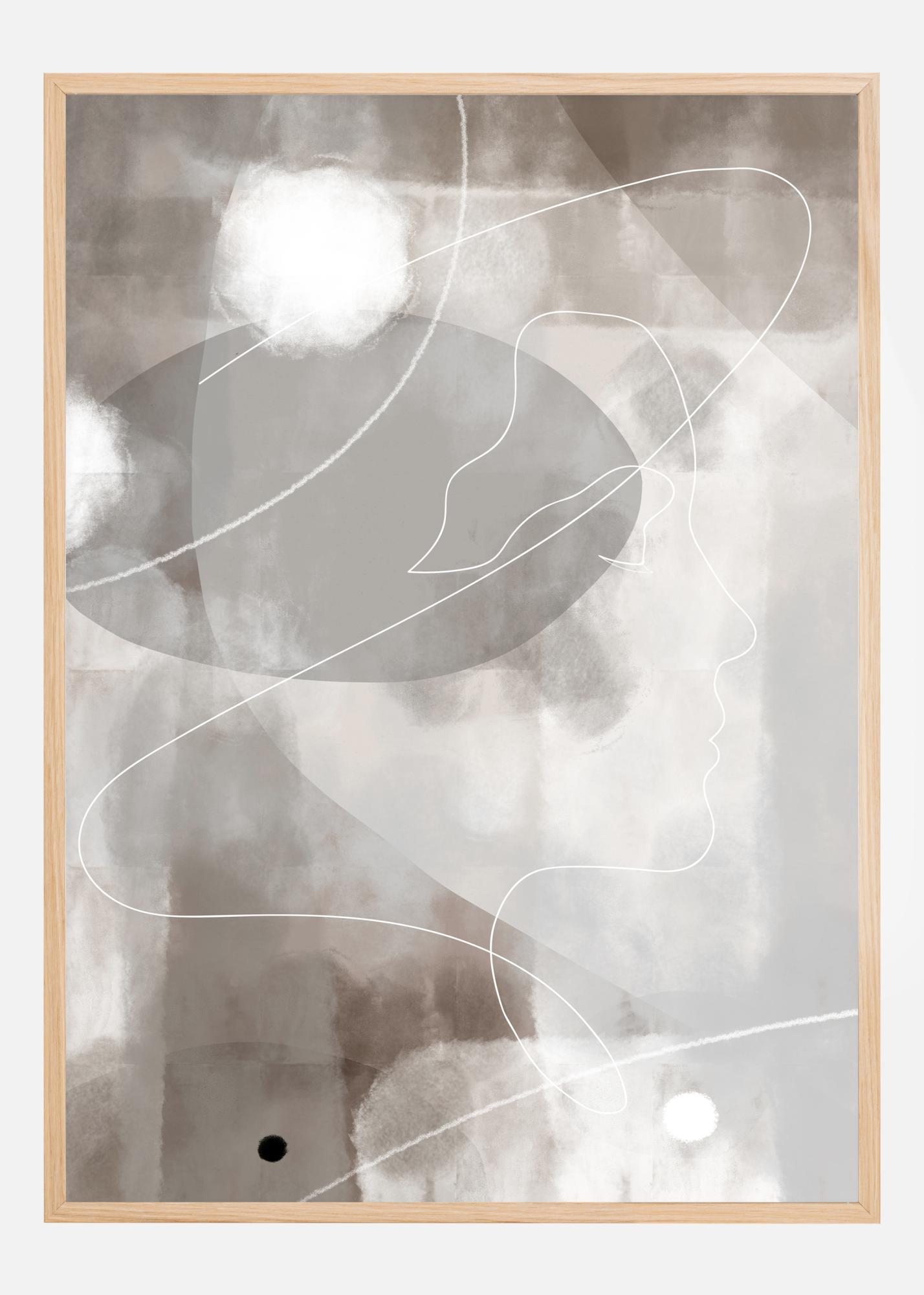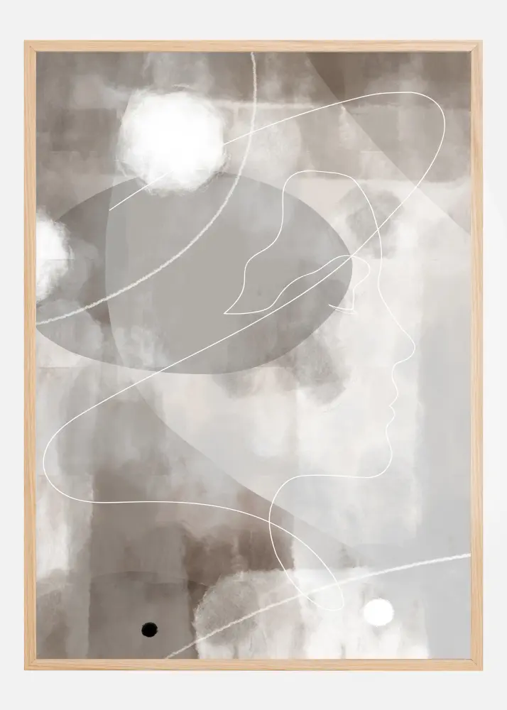 Едно произведение на изкуството, което илюстрира жена с шапка. Този красив профилен принт е изкусно нарисуван, без никога да се вдига четката от принта. Контурът на жената е поставен на светлокафяв фон с няколко бели облака в горната част на принта. Красив постер за спалнята на една жена.