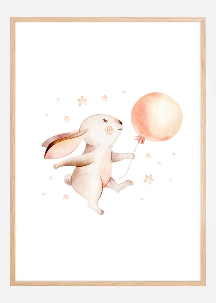 Този очарователен постер изобразява щастлив заек, който се носи във въздуха с помощта на голям, цветен балон. Заобиколен от малки златни звезди, тази мечтателна акварелна рисунка създава усещане за магия и свобода. Светлите и топли тонове на илюстрацията предизвикват усещане за игривост и щастие, което я прави перфектна за разпръскване на радост в детска стая или в който и да е уютен ъгъл на дома.