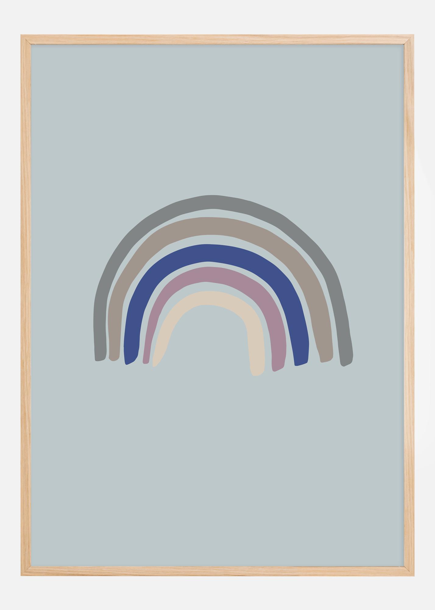Този изчистен и съвременен постер изобразява стилизирана дъга на успокояващ син фон, предлагайки модерна интерпретация на класическия мотив. Дъгите на дъгата, в нюанси на сиво, синьо, розово и лилаво, създават плавен преход от един цвят към друг, като същевременно предават усещане за баланс и хармония. Това минималистично произведение на изкуството е фин, но силен напомнящ символ за надежда и спокойствие и би било изискано допълнение към всяко съвременно пространство.