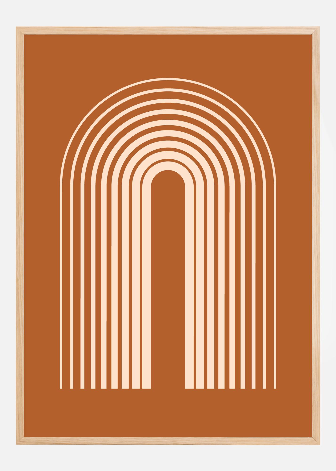 Този плакат с абстрактен полудъгов модел е почит към модерното изкуство и дизайн. Моделът изглежда като серия от перфектно симетрични дъги в топли, тонални цветове, които създават успокояващо и ритмично визуално изразяване. Постепенното затъмняване на теракотен фон предлага дълбок и богат пейзаж, от който да изпъкнат по-светлите линии, създавайки динамичен контраст, който пленява погледа.