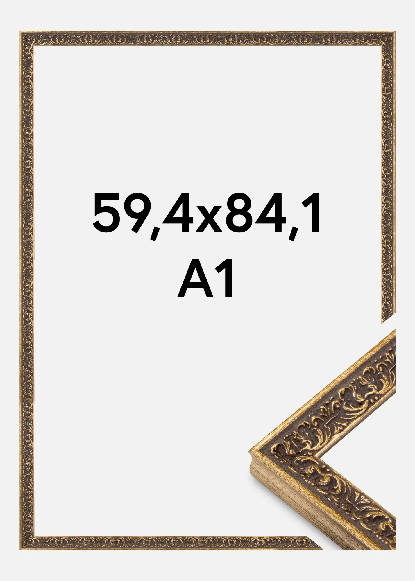 Тази елегантна фоторамка с размери 59,4x84 см е перфектна комбинация от класически дизайн и модерна функционалност. Със своя античен стил и красиво детайлирана орнаментика в сивкаво с златисти елементи, тя придава винтидж усещане, което подобрява всяко помещение. Тази рамка е идеална за създаване на изискана атмосфера в дома ви.