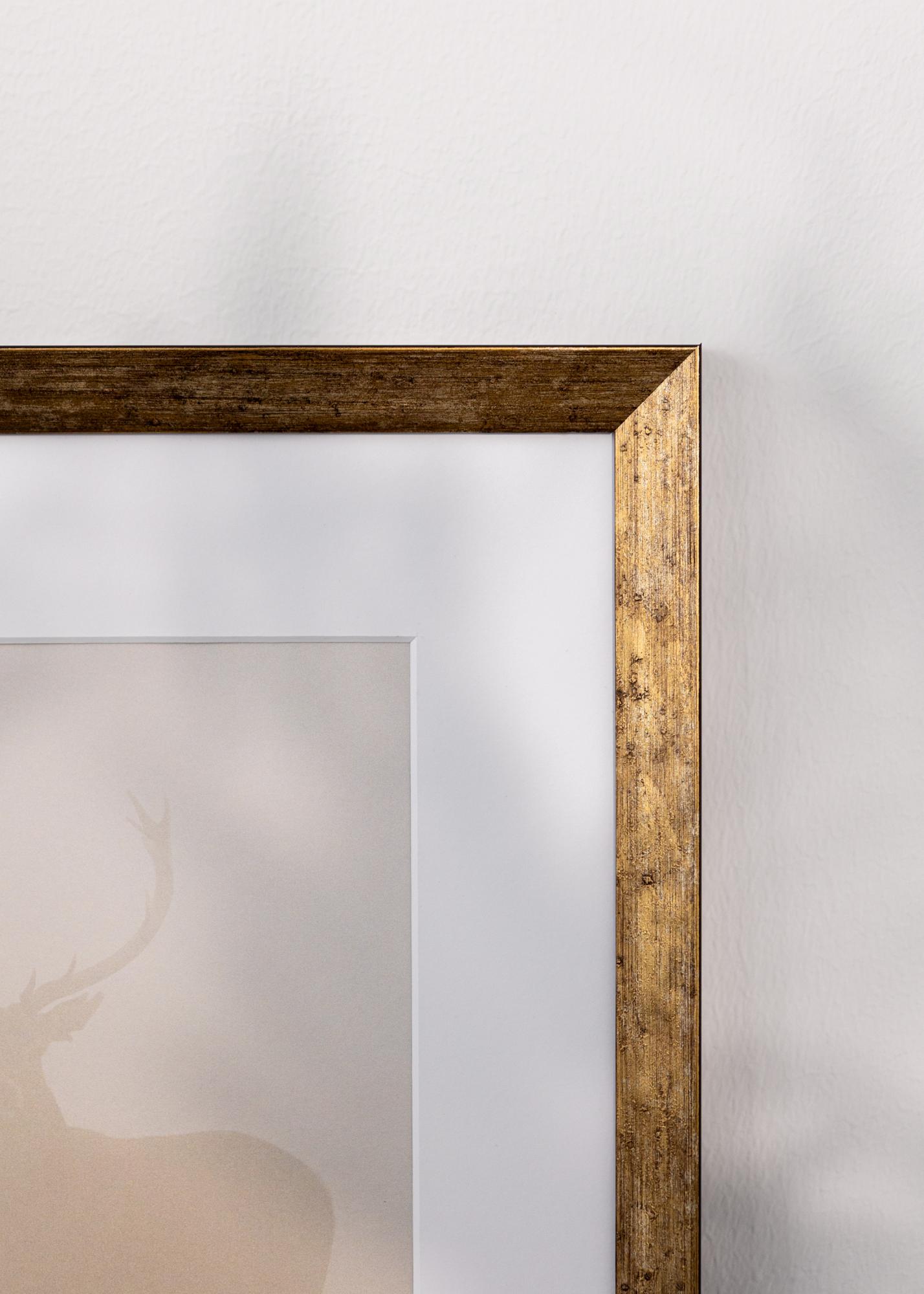 Тази елегантна фоторамка в злато е перфектна комбинация от винтидж усещане и модерна функционалност. Изработена в Италия, тя предлага състарено златно покритие с леко грапава повърхност, която придава рустикален и вечен чар. С рамка, която е 20 мм широка и с дълбочина от 24 мм, тази рамка за картини създава изискан вид, който подчертава произведенията на изкуството или фотографии с антична нотка.