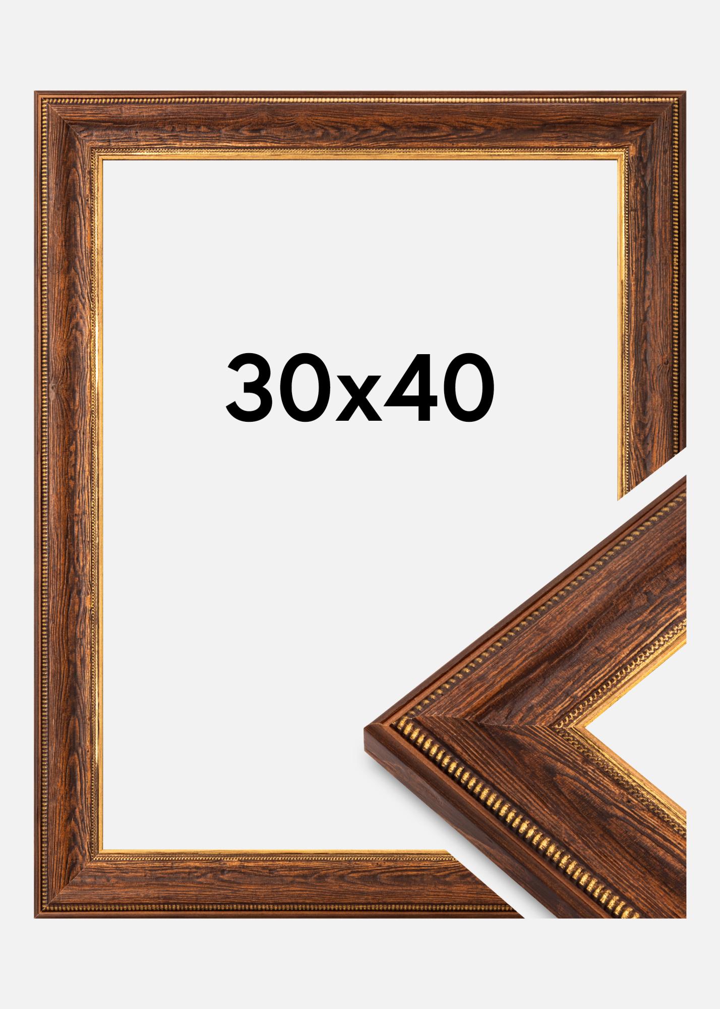 Тази елегантна фоторамка с размери 30x40 см е перфектна комбинация от рустикален чар и класическа елегантност. Изработена от висококачествено дърво, рамката има дълбок и топъл кафяв цвят, който подчертава естествената структура на дървото. Декоративните златни детайли по вътрешния ръб придават изисканост, което прави тази рамка за картини идеална за традиционни и вдъхновени от винтидж интериори.