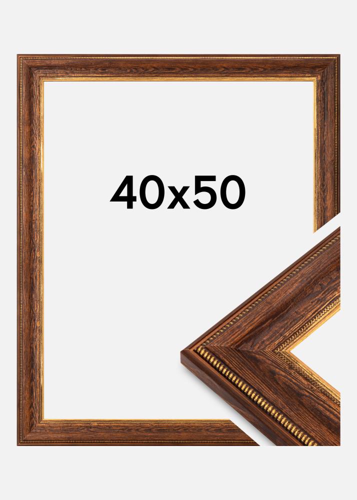 Тази елегантна фоторамка с размер 40x50 cm е перфектна комбинация от рустикален чар и класическа елегантност. Изработена от висококачествено дърво, рамката има дълбок и богат кафяв цвят, който подчертава естествената дървесна структура. Декоративните златни детайли по вътрешния ръб придават изтънченост, която допълва както традиционни, така и винтидж вдъхновени интериори.