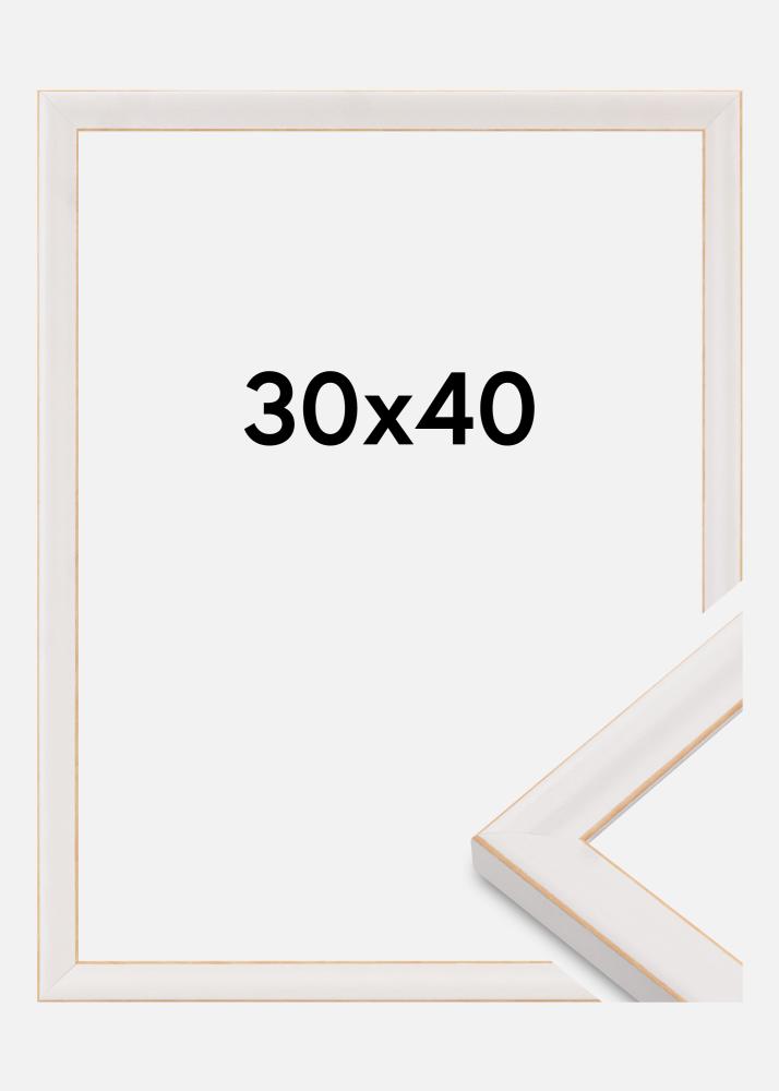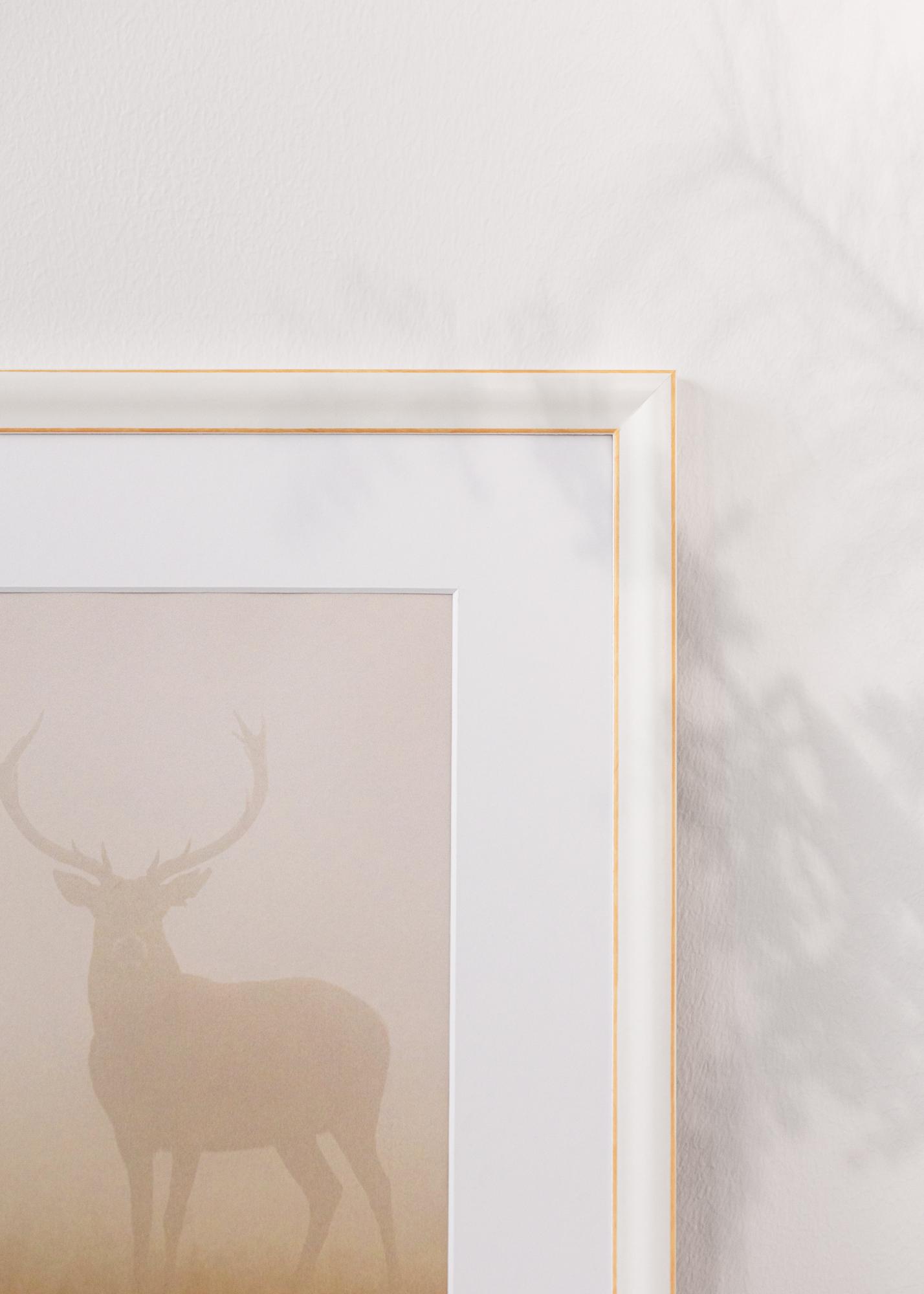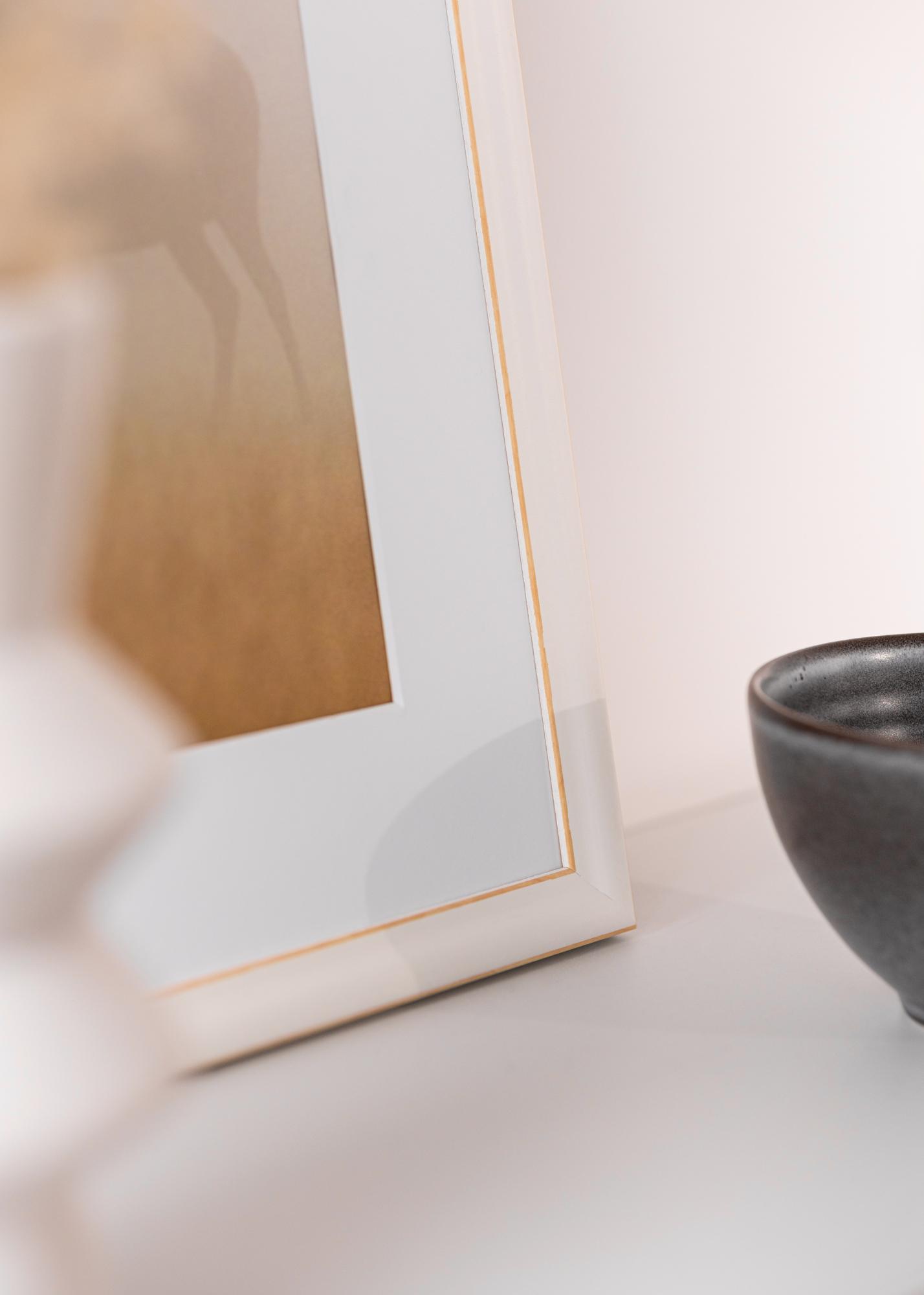 Тази елегантна фоторамка в мек, кремаво бял нюанс с тънък златен кант е перфектна комбинация от стил и функционалност. С профил на рамката, който е 20 мм широк и дълбочина от 16 мм, тази рамка предлага стабилно и здраво обрамчване за вашите любими снимки. Рамката е изработена от дърво и има леко извита профил, която й придава изискана и вечна визия. Финото златно детайлизиране по вътрешния ръб придава изключителен усет и обрамчва вашите произведения на изкуството или фотографии по елегантен начин.