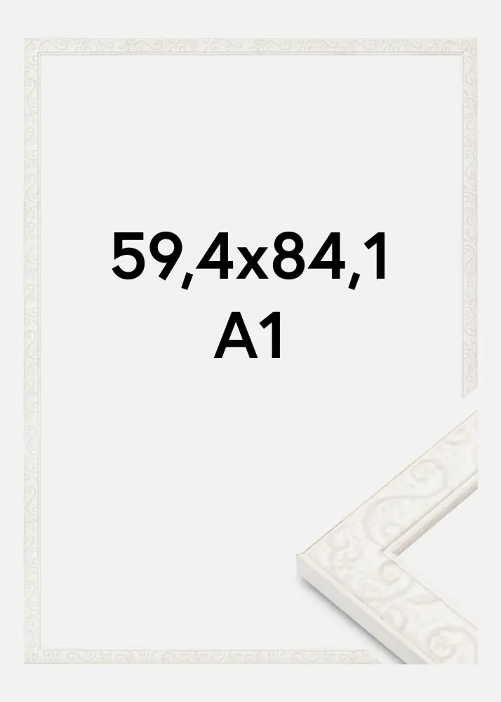 С тънкия си профил и фин, орнаментиран дизайн по краищата, тази рамка за картини предлага стилно и романтично усещане. Тя се вписва отлично в класически или селски интериорни стилове и ще бъде красива детайл във вашия дом. Независимо дали искате да изложите произведения на изкуството или фотографии, тази рамка с размери 59,4 x 84 см ще придаде на вашите мотиви вниманието, което заслужават.