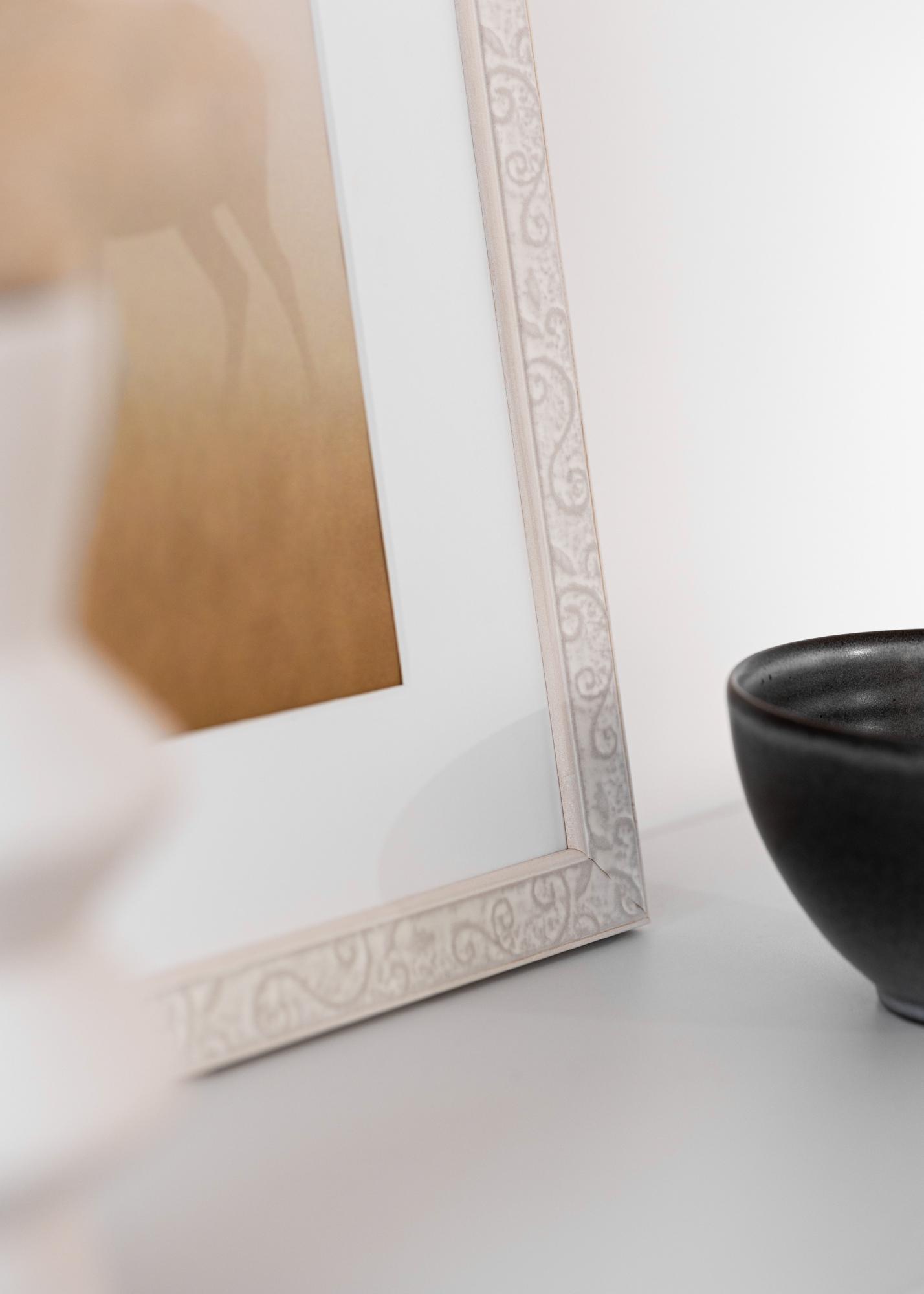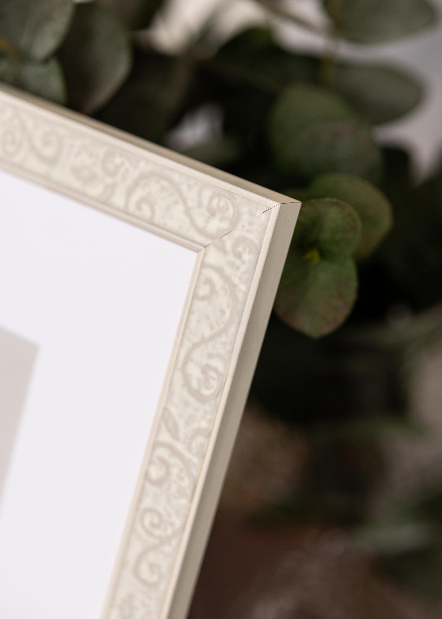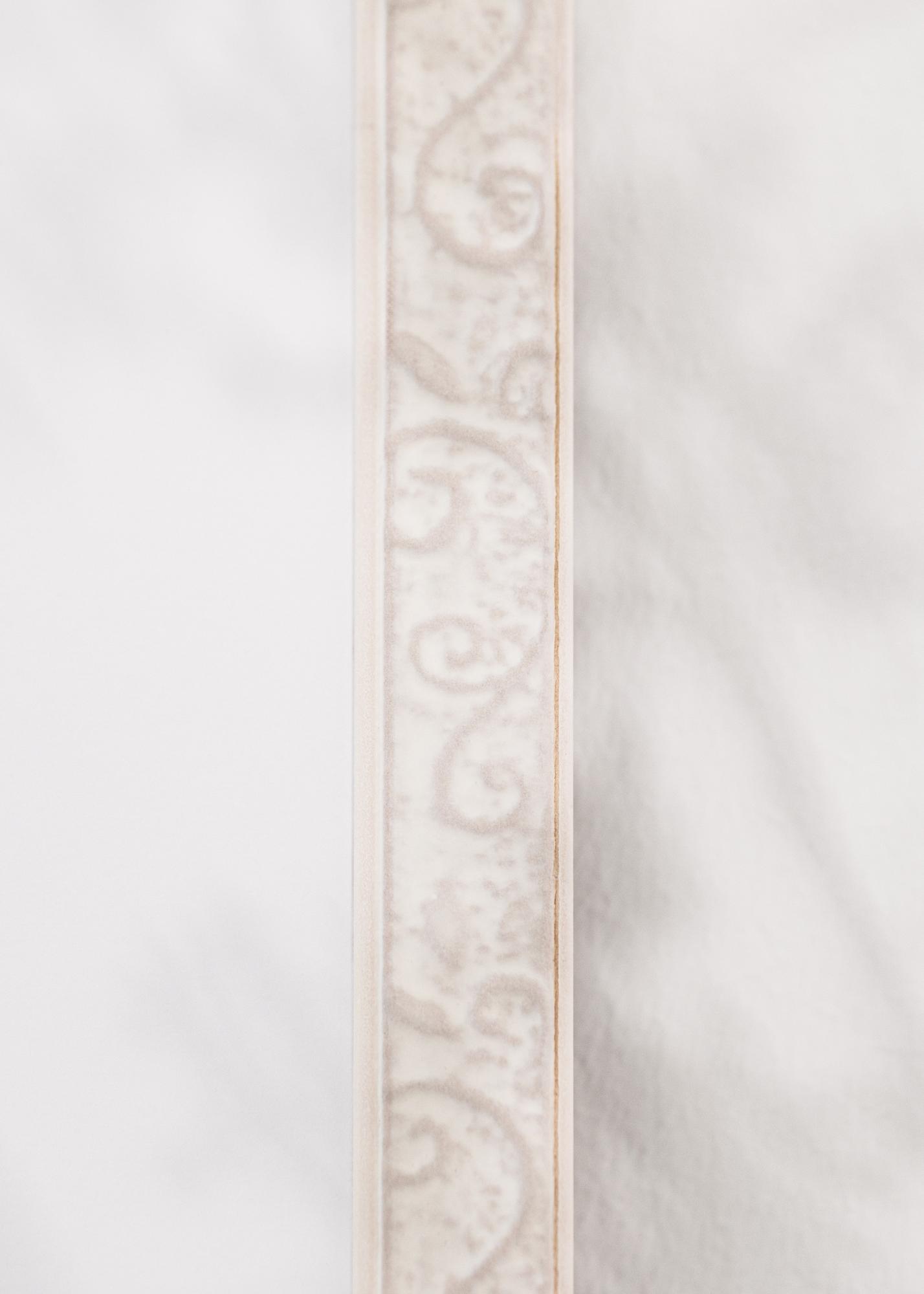 Превърнете вашите спомени в произведения на изкуството с тази елегантна фоторамка в светло бежово. Със субтилен, орнаментен мотив по краищата, тя осигурява стилно и романтично усещане, което пасва перфектно както в класически, така и в селски интериорни стилове. Рамката е изработена от дърво и има тънък профил с размери 25 мм в ширина и 14 мм в дълбочина, което я прави изискано допълнение към вашия дом.