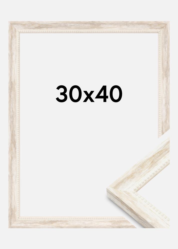Тази красива фоторамка в бял цвят е перфектната комбинация от рустикален чар и стилна елегантност. Със своя размер от 30x40 см, тя е идеална за подчертаване на любимите ви мотиви, независимо дали са произведения на изкуството или фотографии. Рамката има 25 мм широка рамка и дълбочина от 19 мм, което й придава солидно и здраво усещане.