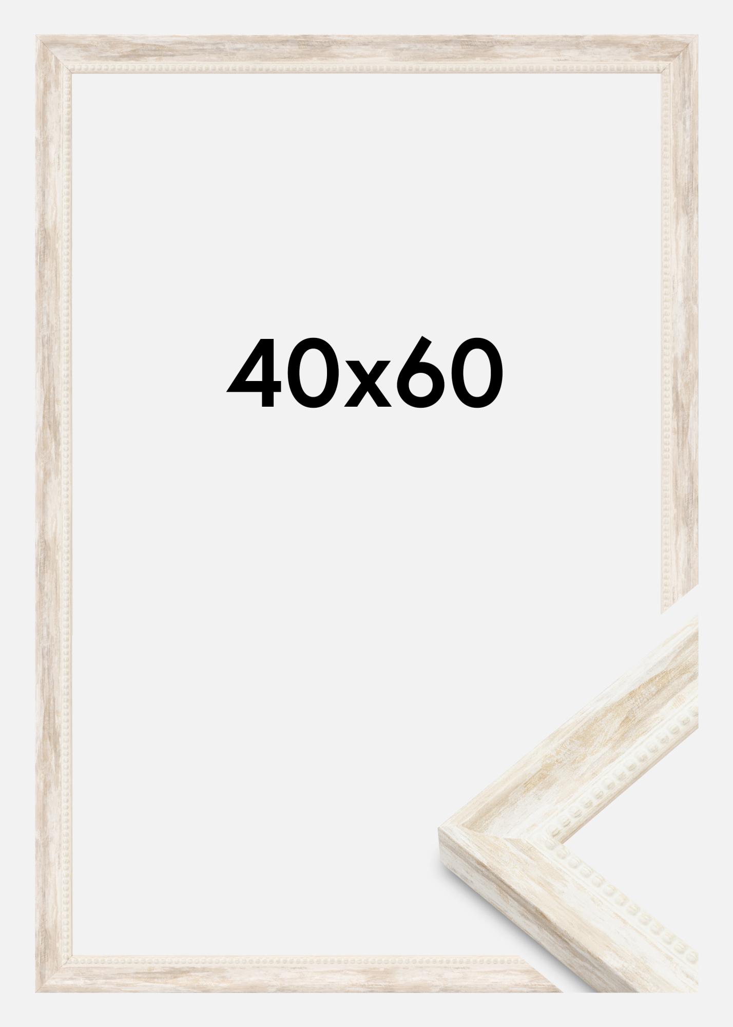 Тази красива фоторамка с размер 40x60 см е перфектната комбинация от рустикален чар и елегантност. Със своя бял цвят и ненатрапчива антична визия, тя е отличен избор за подчертаване на вашите любими произведения на изкуството или фотографии. Декоративният перлен кант по вътрешността на рамката придава класически и детайлен дизайн, който подхожда както на модерни, така и на традиционни интериори.