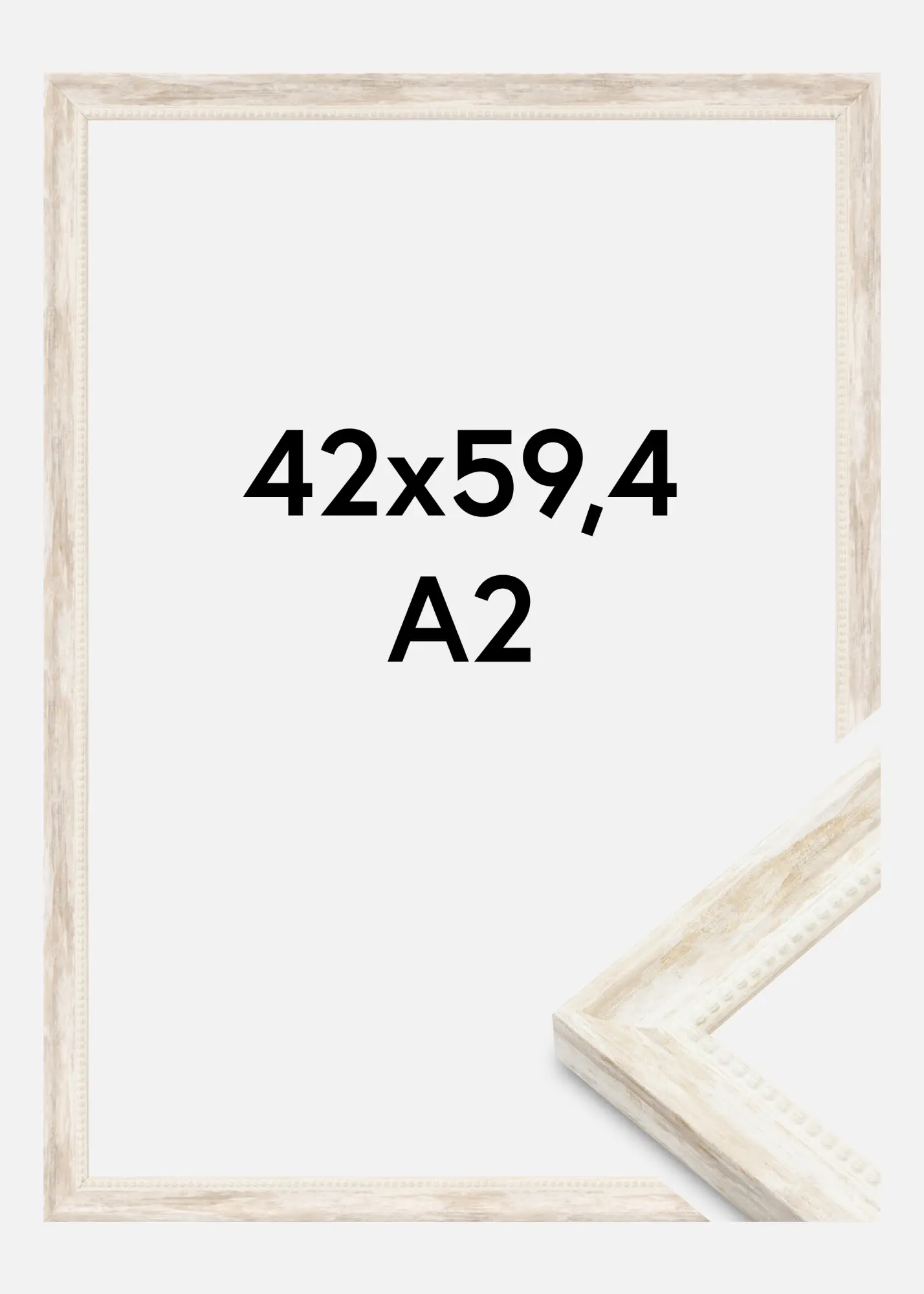 Открийте красива фоторамка с размери 42x59,4 cm, която комбинира елегантност със селски чар. Тази бяла рамка за картини е изработена от дърво и има леко антично усещане, което се подчертава от декоративен перлен ръб по вътрешната страна. Със своя класически и детайлен дизайн тя е перфектна за обрамчване както на произведения на изкуството, така и на фотографии, независимо дали имате модерен или традиционен интериор.