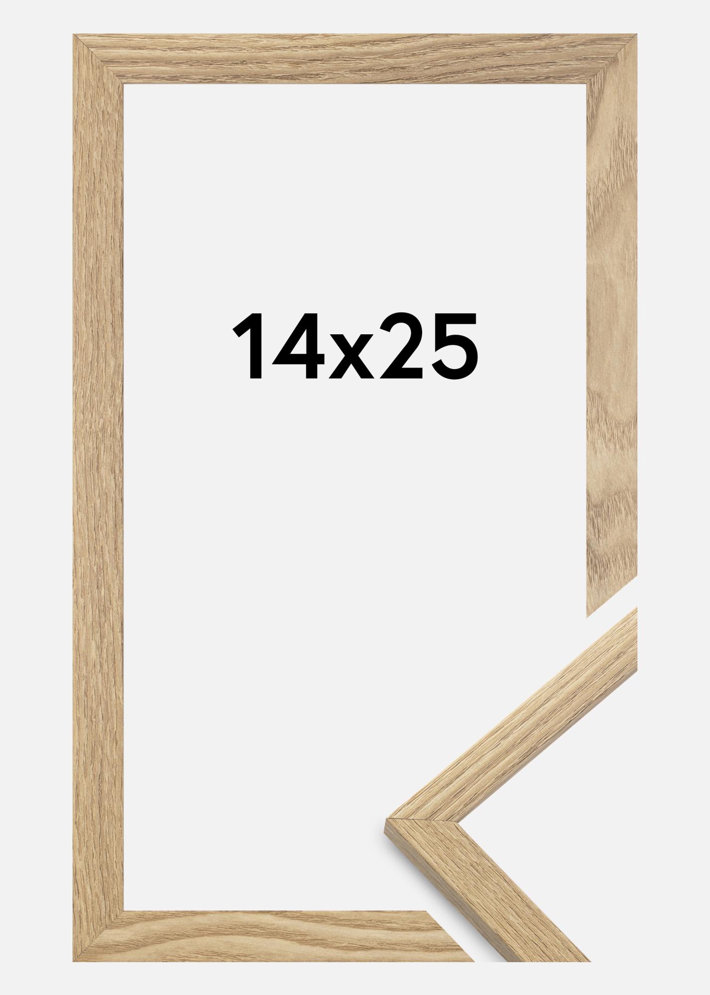 Рамката е изработена от MDF материал с фолиран повърхност в дъбов нюанс и има тънък профил на рамката от 14 мм. Има достатъчно място да допълните снимките си с луксозен паспарту, благодарение на вътрешната дълбочина на рамката (фалшдълбочина) от 12 мм.