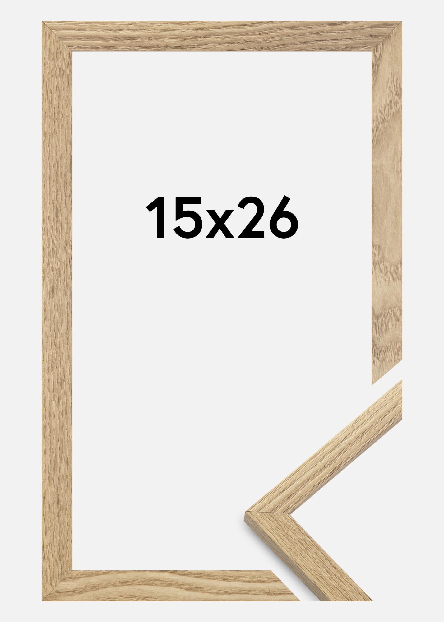 Рамката е изработена от MDF материал с фолиран повърхност в дъбов нюанс и има тънък профил на рамката от 14 мм. Има достатъчно място да допълните снимките си с луксозен паспарту, благодарение на вътрешната дълбочина на рамката (фалшдълбочина) от 12 мм.