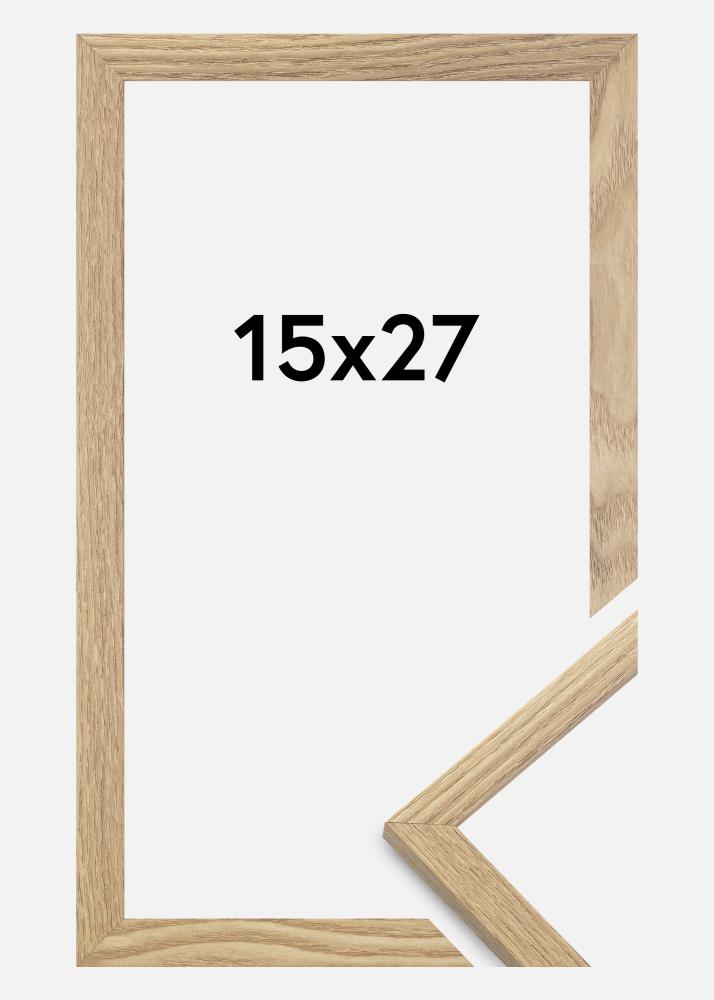 Рамката е изработена от MDF материал с фолиран повърхност в дъбов нюанс и има тънък профил на рамката от 14 мм. Има достатъчно място да допълните снимките си с луксозен паспарту, благодарение на вътрешната дълбочина на рамката (фалшдълбочина) от 12 мм.