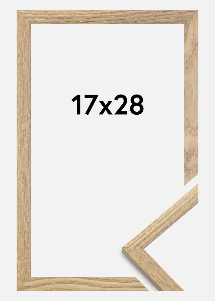 Рамката е изработена от MDF материал с фолиран повърхност в дъбов нюанс и има тънък профил на рамката от 14 мм. Има достатъчно място да допълните снимките си с луксозен паспарту, благодарение на вътрешната дълбочина на рамката (фалшдълбочина) от 12 мм.