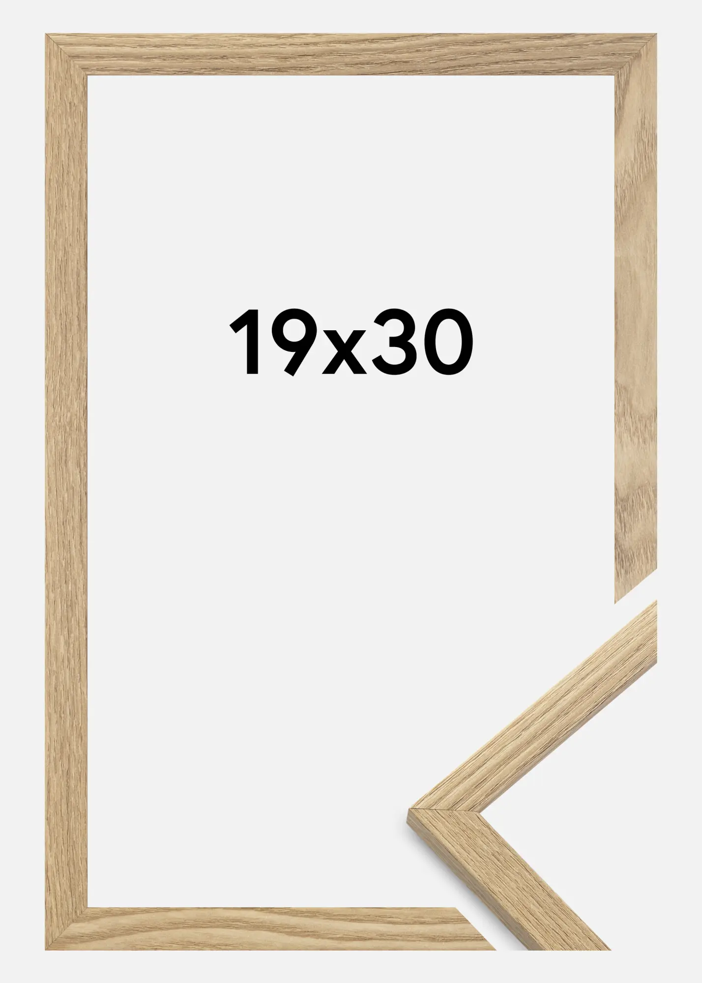 Рамката е изработена от MDF материал с фолиран повърхност в дъбов нюанс и има тънък профил на рамката от 14 мм. Има достатъчно място да допълните снимките си с луксозен паспарту, благодарение на вътрешната дълбочина на рамката (фалшдълбочина) от 12 мм.