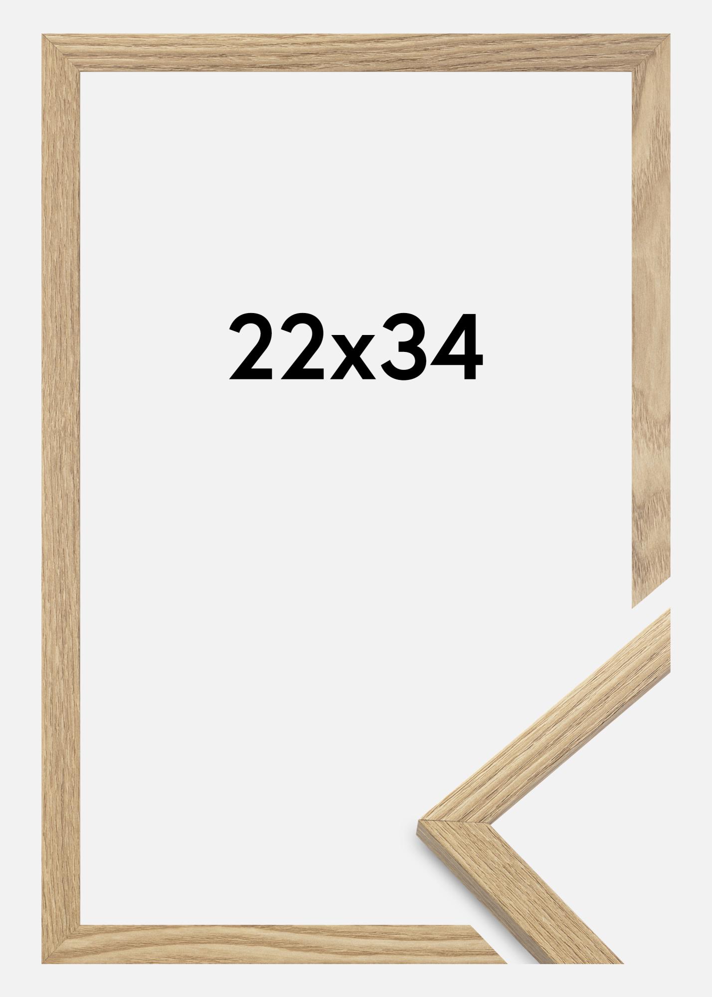 Рамката е изработена от MDF материал с фолиран повърхност в дъбов нюанс и има тънък профил на рамката от 14 мм. Има достатъчно място да допълните снимките си с луксозен паспарту, благодарение на вътрешната дълбочина на рамката (фалшдълбочина) от 12 мм.