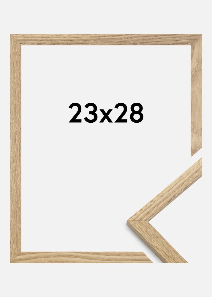 Рамката е изработена от MDF материал с фолиран повърхност в дъбов нюанс и има тънък профил на рамката от 14 мм. Има достатъчно място да допълните снимките си с луксозен паспарту, благодарение на вътрешната дълбочина на рамката (фалшдълбочина) от 12 мм.