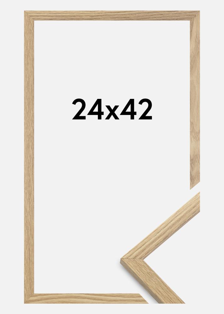 Рамката е изработена от MDF материал с фолиран повърхност в дъбов нюанс и има тънък профил на рамката от 14 мм. Има достатъчно място да допълните снимките си с луксозен паспарту, благодарение на вътрешната дълбочина на рамката (фалшдълбочина) от 12 мм.