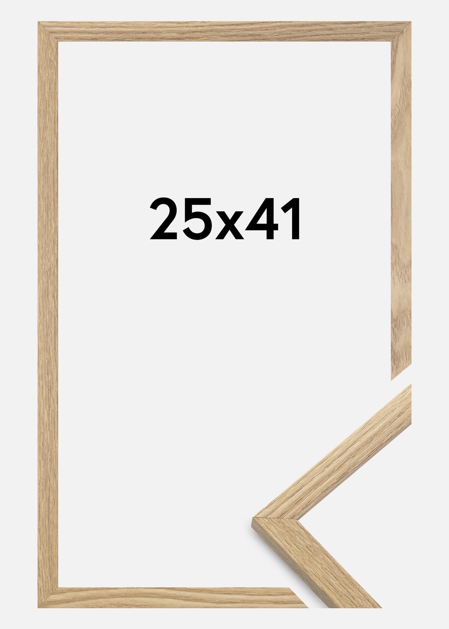 Рамката е изработена от MDF материал с фолиран повърхност в дъбов нюанс и има тънък профил на рамката от 14 мм. Има достатъчно място да допълните снимките си с луксозен паспарту, благодарение на вътрешната дълбочина на рамката (фалшдълбочина) от 12 мм.