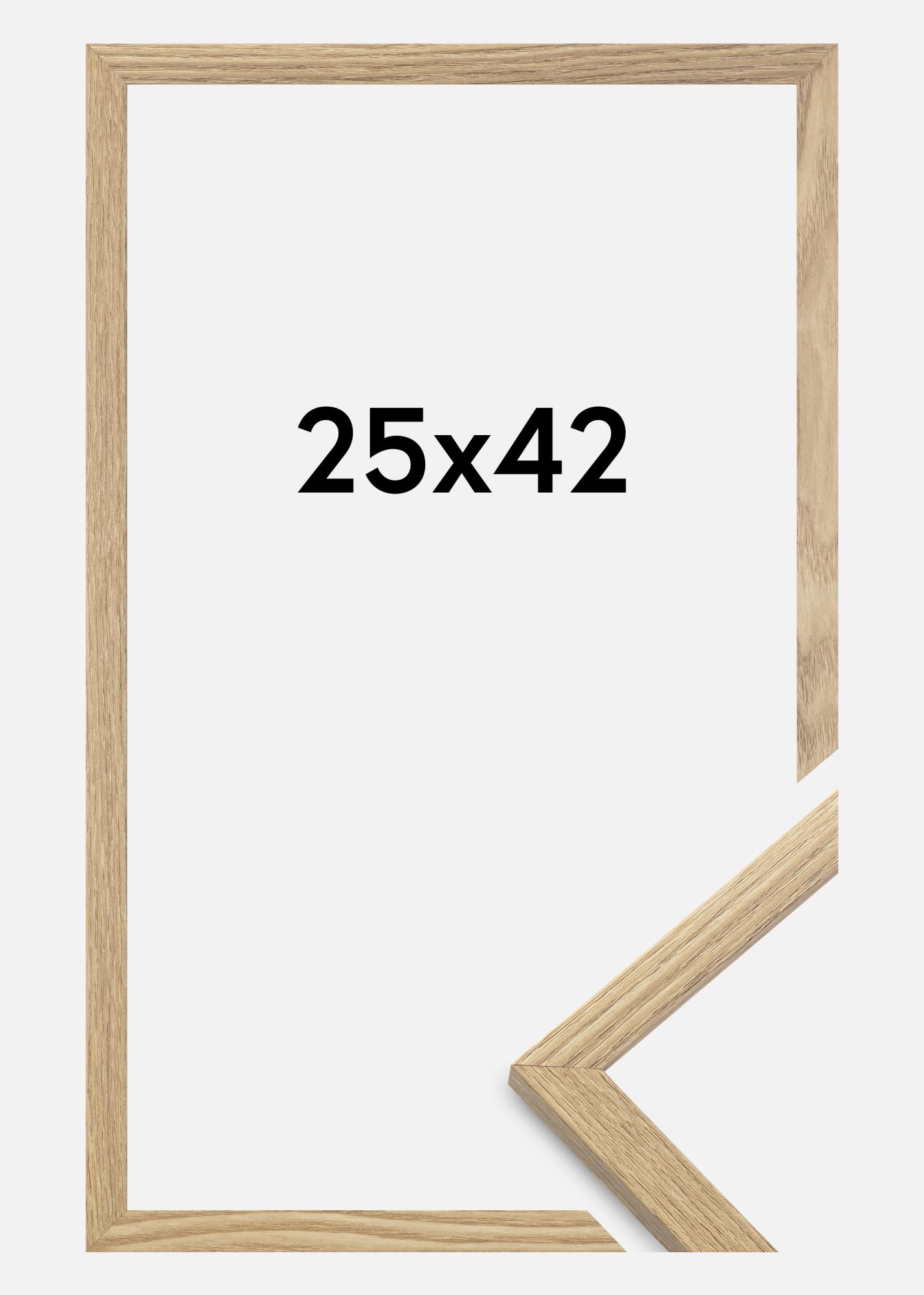Рамката е изработена от MDF материал с фолиран повърхност в дъбов нюанс и има тънък профил на рамката от 14 мм. Има достатъчно място да допълните снимките си с луксозен паспарту, благодарение на вътрешната дълбочина на рамката (фалшдълбочина) от 12 мм.