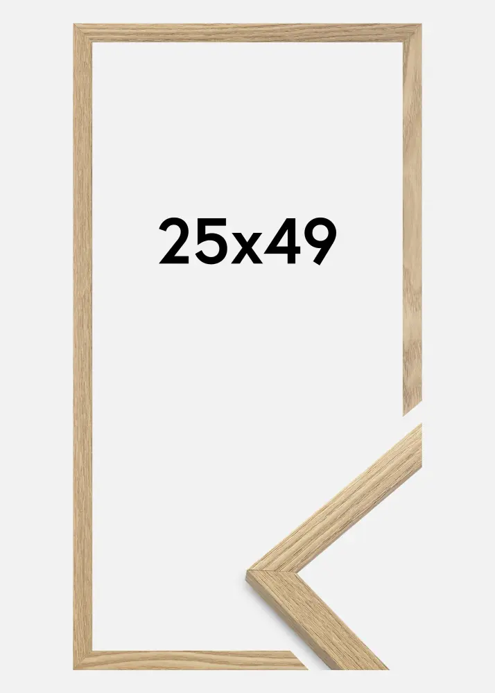 Рамката е изработена от MDF материал с фолиран повърхност в дъбов нюанс и има тънък профил на рамката от 14 мм. Има достатъчно място да допълните снимките си с луксозен паспарту, благодарение на вътрешната дълбочина на рамката (фалшдълбочина) от 12 мм.