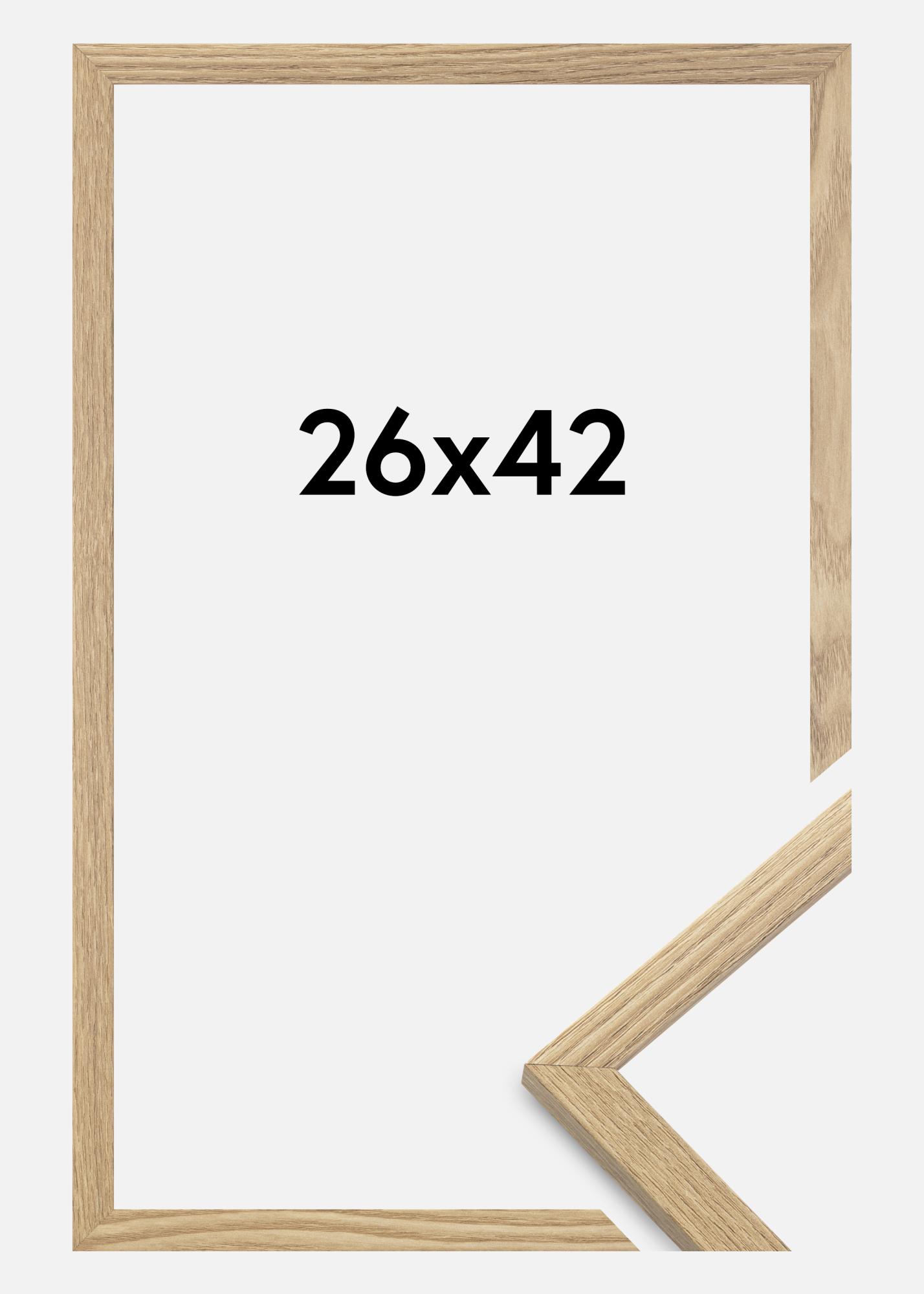 Рамката е изработена от MDF материал с фолиран повърхност в дъбов нюанс и има тънък профил на рамката от 14 мм. Има достатъчно място да допълните снимките си с луксозен паспарту, благодарение на вътрешната дълбочина на рамката (фалшдълбочина) от 12 мм.