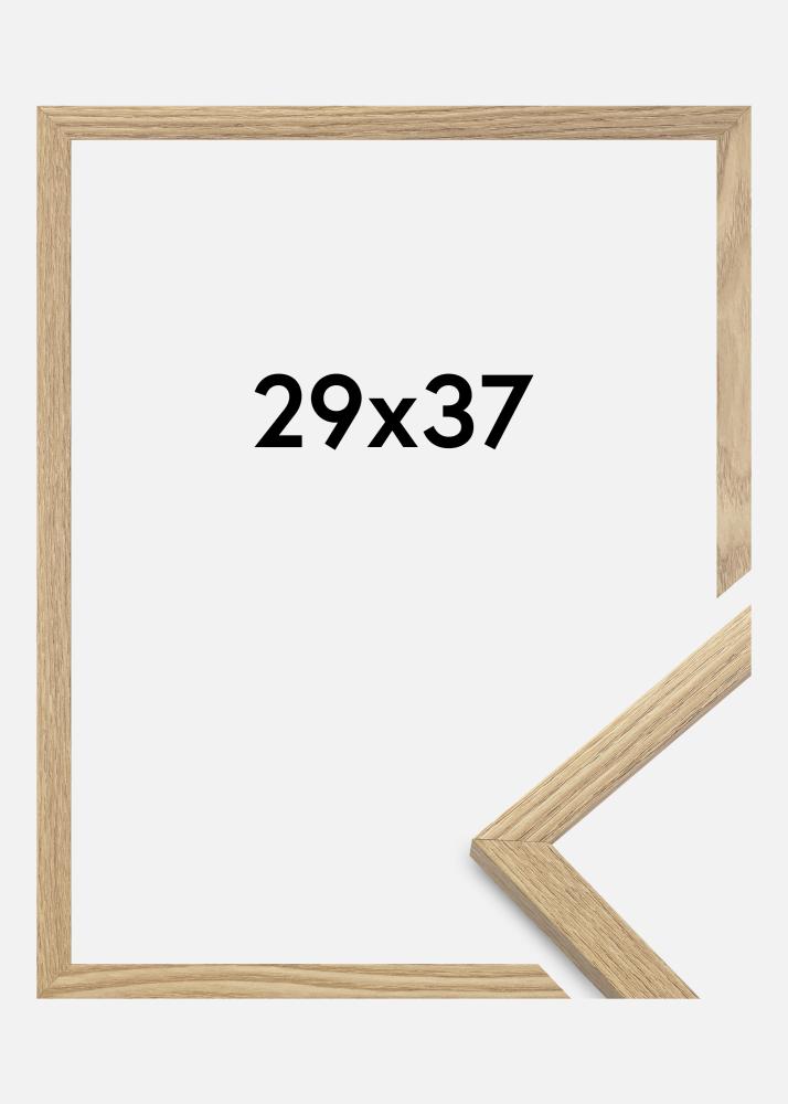 Рамката е изработена от MDF материал с фолиран повърхност в дъбов нюанс и има тънък профил на рамката от 14 мм. Има достатъчно място да допълните снимките си с луксозен паспарту, благодарение на вътрешната дълбочина на рамката (фалшдълбочина) от 12 мм.