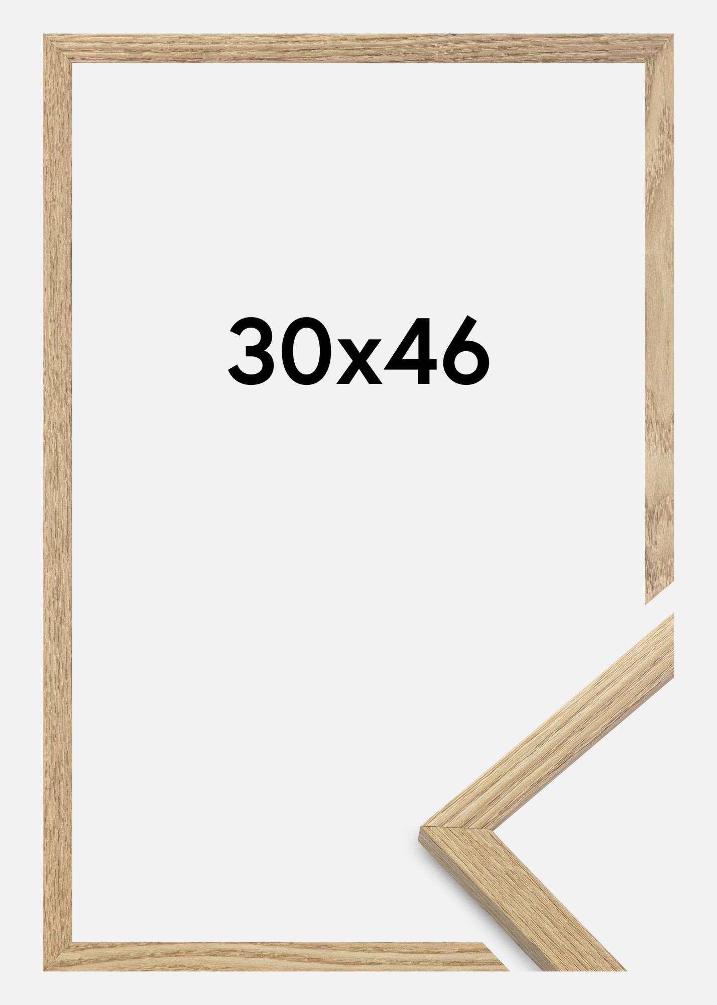 Рамката е изработена от MDF материал с фолиран повърхност в дъбов нюанс и има тънък профил на рамката от 14 мм. Има достатъчно място да допълните снимките си с луксозен паспарту, благодарение на вътрешната дълбочина на рамката (фалшдълбочина) от 12 мм.