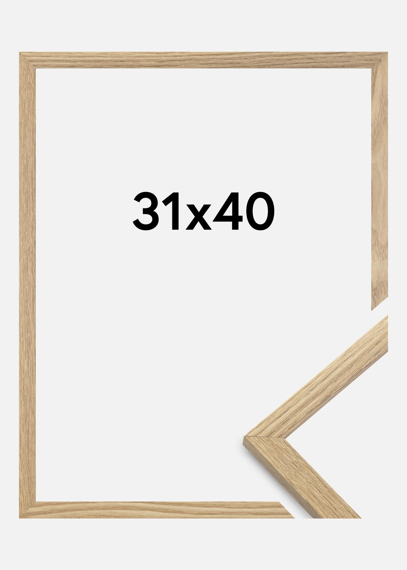 Рамката е изработена от MDF материал с фолиран повърхност в дъбов нюанс и има тънък профил на рамката от 14 мм. Има достатъчно място да допълните снимките си с луксозен паспарту, благодарение на вътрешната дълбочина на рамката (фалшдълбочина) от 12 мм.