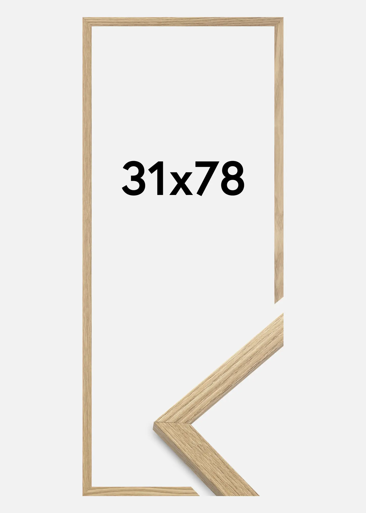 Рамката е изработена от MDF материал с фолиран повърхност в дъбов нюанс и има тънък профил на рамката от 14 мм. Има достатъчно място да допълните снимките си с луксозен паспарту, благодарение на вътрешната дълбочина на рамката (фалшдълбочина) от 12 мм.