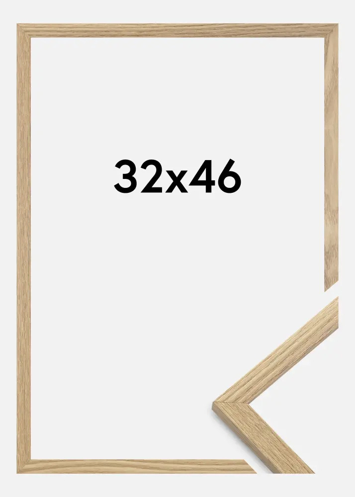 Рамката е изработена от MDF материал с фолиран повърхност в дъбов нюанс и има тънък профил на рамката от 14 мм. Има достатъчно място да допълните снимките си с луксозен паспарту, благодарение на вътрешната дълбочина на рамката (фалшдълбочина) от 12 мм.