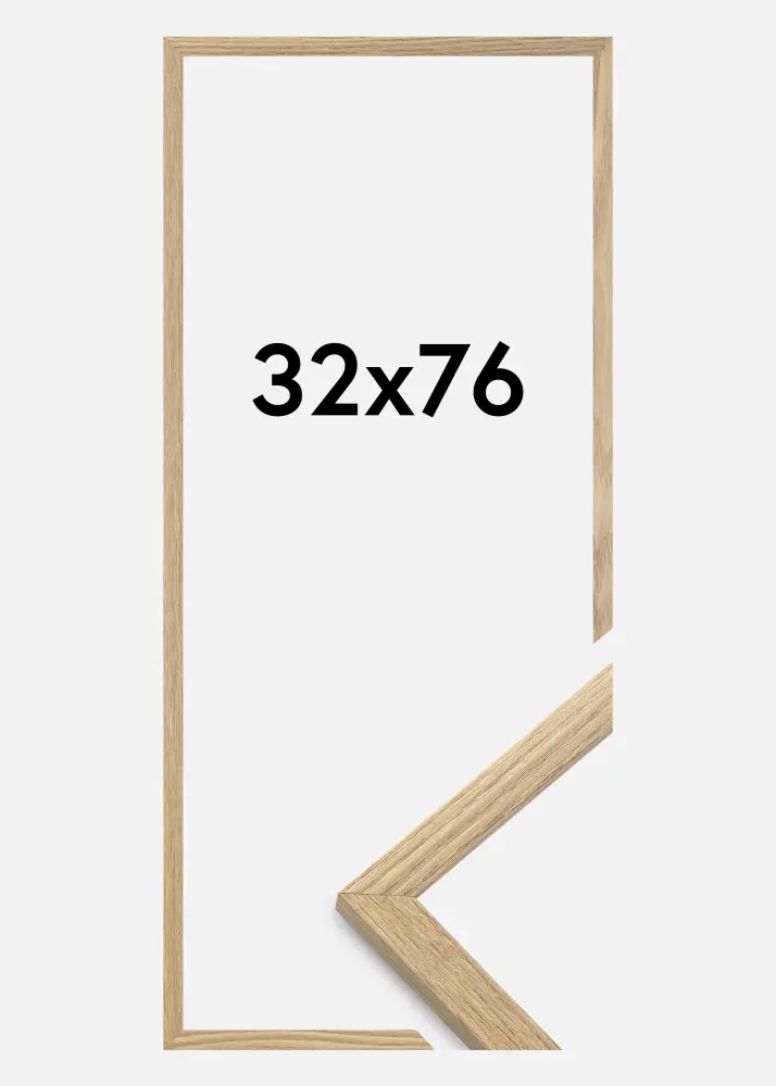 Рамката е изработена от MDF материал с фолиран повърхност в дъбов нюанс и има тънък профил на рамката от 14 мм. Има достатъчно място да допълните снимките си с луксозен паспарту, благодарение на вътрешната дълбочина на рамката (фалшдълбочина) от 12 мм.