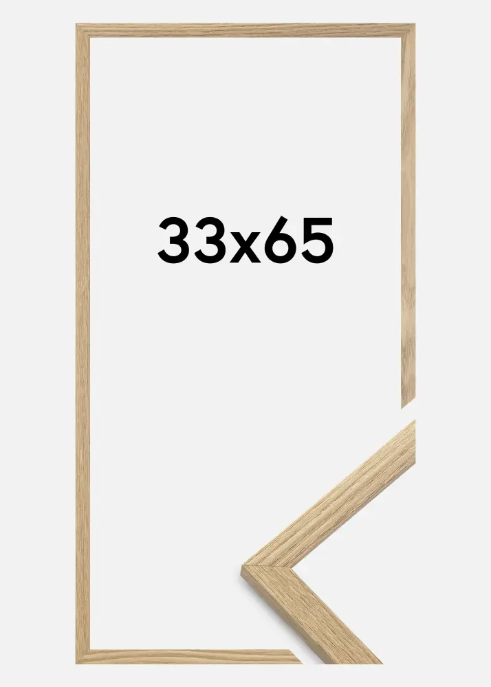 Рамката е изработена от MDF материал с фолиран повърхност в дъбов нюанс и има тънък профил на рамката от 14 мм. Има достатъчно място да допълните снимките си с луксозен паспарту, благодарение на вътрешната дълбочина на рамката (фалшдълбочина) от 12 мм.