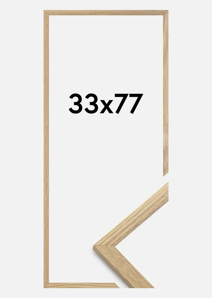 Рамката е изработена от MDF материал с фолиран повърхност в дъбов нюанс и има тънък профил на рамката от 14 мм. Има достатъчно място да допълните снимките си с луксозен паспарту, благодарение на вътрешната дълбочина на рамката (фалшдълбочина) от 12 мм.